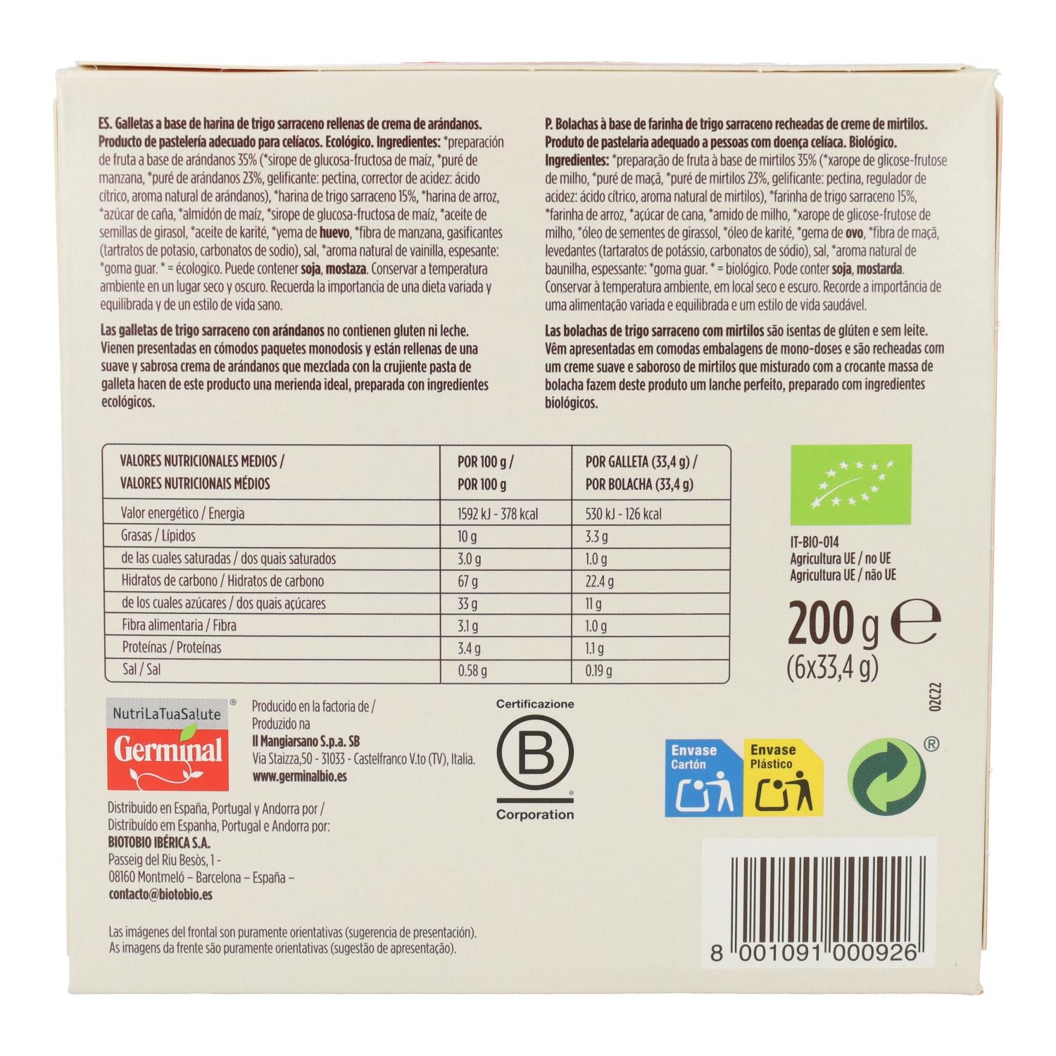 Toda la información sobre "Galletas de arándano y trigo sarraceno sin gluten Germinal Bio 200 g"