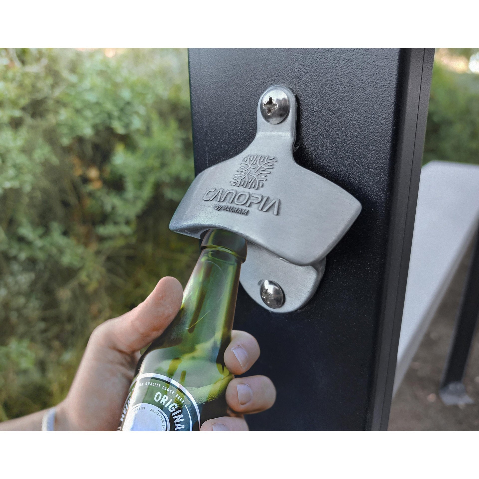 En un sofisticado color negro, con 223 cm entre postes de alta resistencia y 230 cm de espacio para la cabeza, también puede utilizar el cenador-parrilla para montar una pequeña zona de estar o comedor al aire libre, o como refugio para bicicletas. Tiene dos encimeras de acero inoxidable incorporadas que puede utilizar para preparar mientras cocina y ganchos para sujetar sus utensilios, o puede utilizar los estantes para servir bebidas a sus amigos y familiares (¡utilice el abridor de botellas incorporado!) y añadir macetas a los ganchos para una experiencia de jardín de lujo. Los estantes pueden instalarse en cualquier dirección, mirando hacia el interior o el exterior del cenador para barbacoa y pueden instalarse a la altura que prefiera.