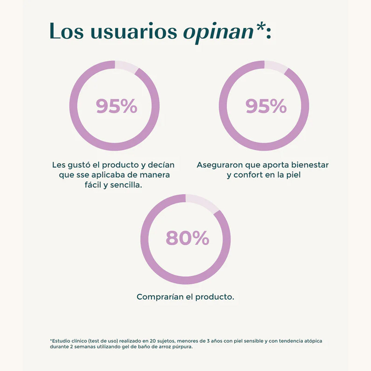 * Estudio clínico (test de uso) en 20 sujetos, menores de 3 años, con piel sensible y con tendencia atópica durante 2 semanas utilizando gel de baño de lavanda