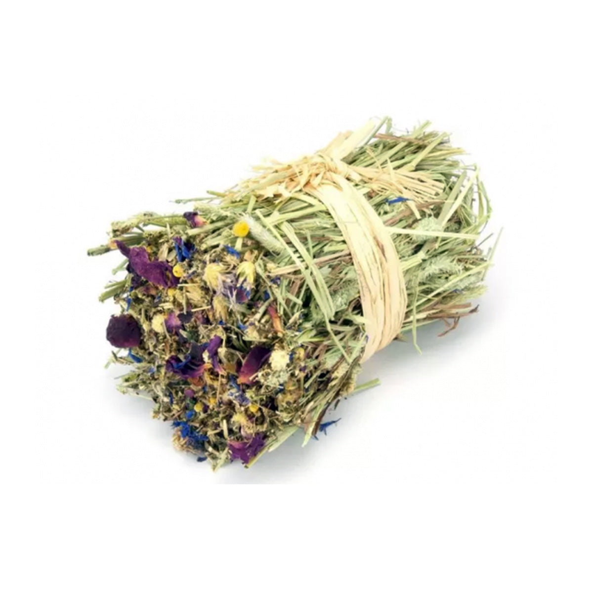 El Haruki de Aciano y Rosa de Ribero es un ramillete de heno de Festuca de alta calidad, cuidadosamente atado a mano y adornado con flores de aciano y pétalos de rosa. Este snack está diseñado no solo para nutrir, sino también para proporcionar una experiencia sensorial enriquecedora para tu mascota. La combinación de heno fibroso con flores coloridas y fragantes convierte este ramillete en una delicia tanto visual como gustativa.