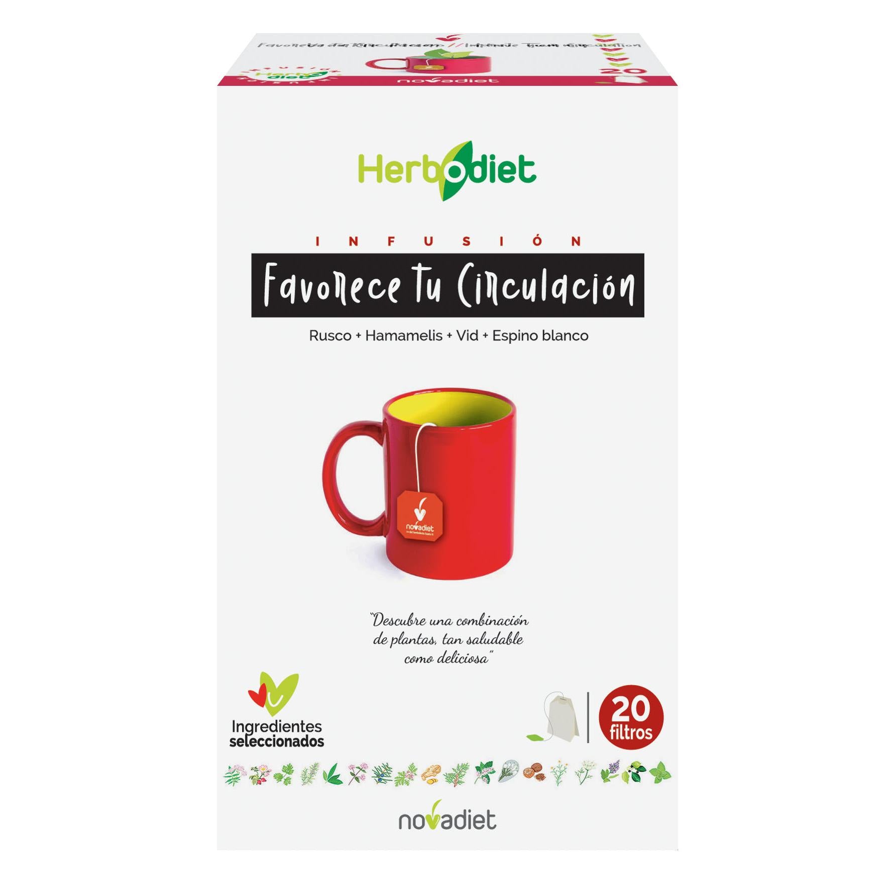 Toda la información sobre "Herbodiet Favorece tu Circulación Novadiet, 20 bolsitas"