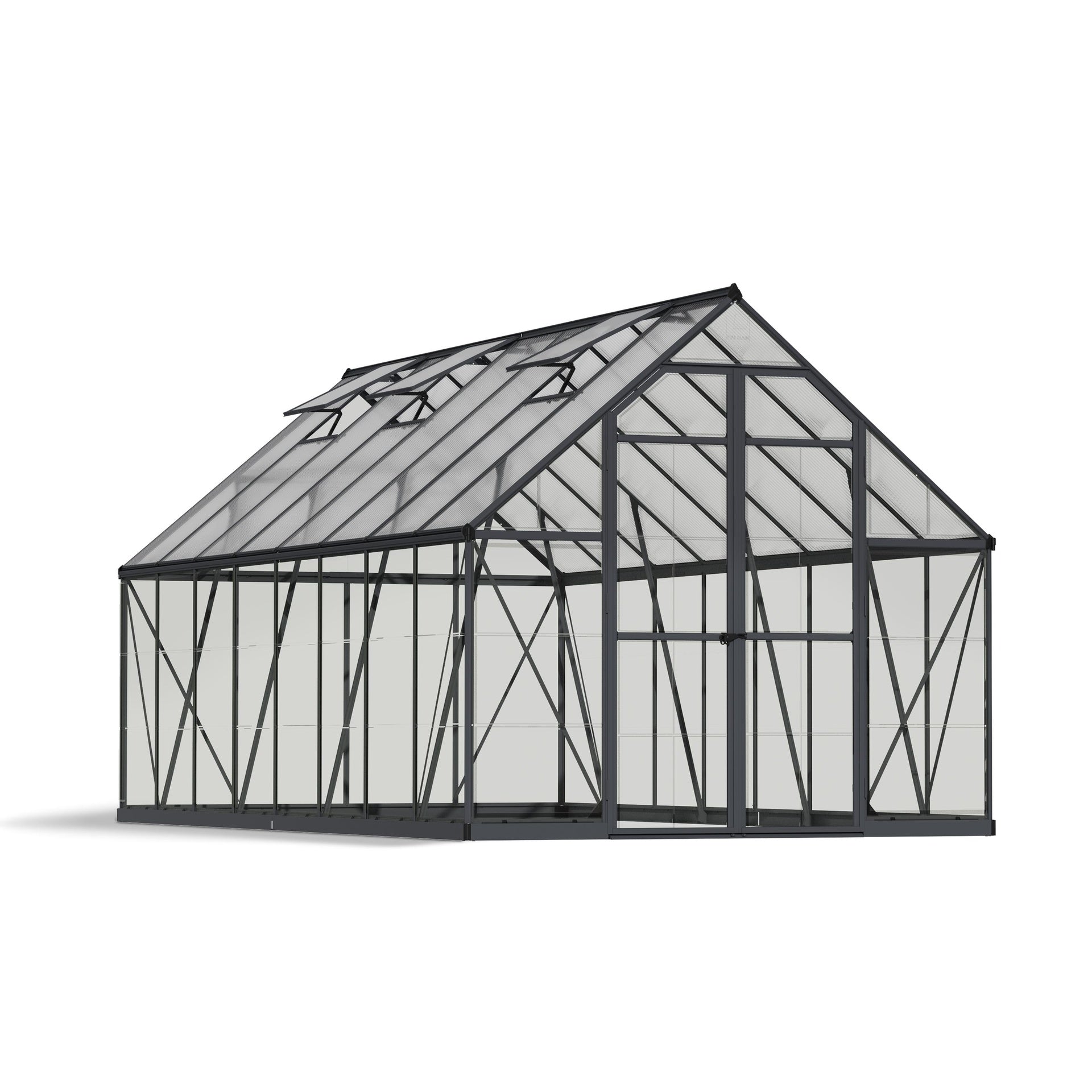 La combinación de los seguros paneles de policarbonato con el marco de aluminio a prueba de óxido y las vigas de soporte extra fuertes le da un invernadero bien diseñado y duradero, por lo que nunca tendrá que preocuparse por la estabilidad o la seguridad del mismo. Si desea un complemento bello, bien diseñado y espacioso para su jardinería, compre un invernadero Balance hoy mismo.