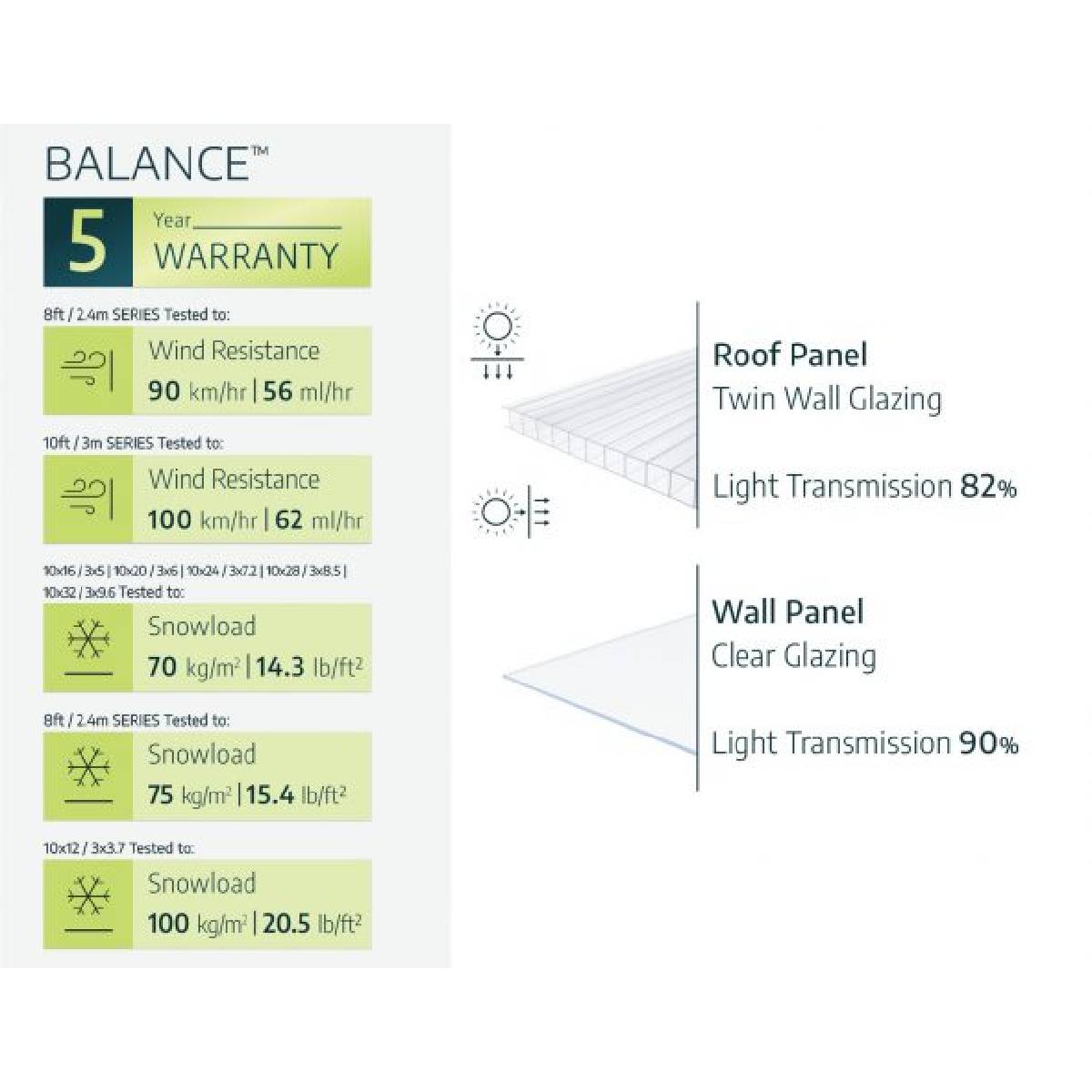 La combinación de los seguros paneles de policarbonato con el marco de aluminio a prueba de óxido y las vigas de soporte extra fuertes le da un invernadero bien diseñado y duradero, por lo que nunca tendrá que preocuparse por la estabilidad o la seguridad del mismo. Si desea un complemento bello, bien diseñado y espacioso para su jardinería, compre un invernadero Balance hoy mismo.