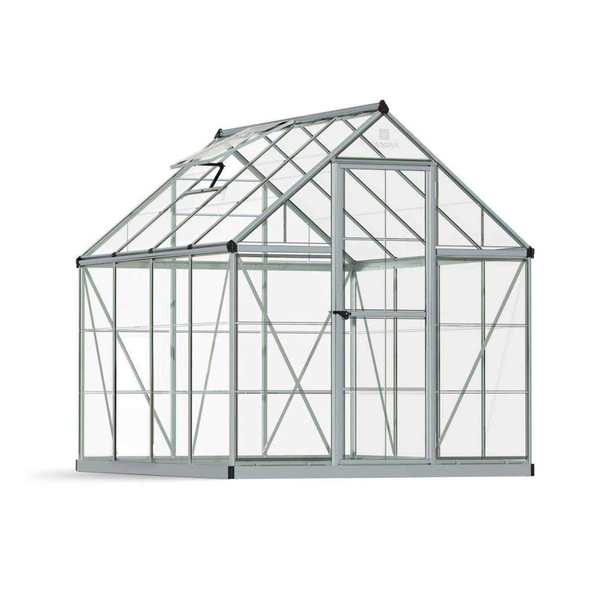 Disfrute de la jardinería en invernadero con el invernadero Harmony 6 'x 8'. Este invernadero de tamaño divertido es lo suficientemente grande para sus sueños de jardinería, pero lo suficientemente pequeño como para adaptarse a su terraza, patio pequeño o balcón. Este invernadero incluye una base perimetral de acero galvanizado resistente a la oxidación, que agrega soporte estructural, estabilidad y alineación. Está hecho de paneles de policarbonato transparentes, prácticamente irrompibles, que son fáciles de deslizar y bloquear en su posición, y un marco de aluminio plateado natural resistente a la oxidación. El respiradero del invernadero ayuda a mantener los niveles de temperatura y humedad deseados y proporciona ventilación. Con su diseño elegante y delicado, el resultado final es hermoso, funcional, resistente, fabricado para durar. • Los paneles de policarbonato cristalino, prácticamente irrompibles, proporcionan más del 90% de transmisión de luz y bloquean los dañinos rayos UV