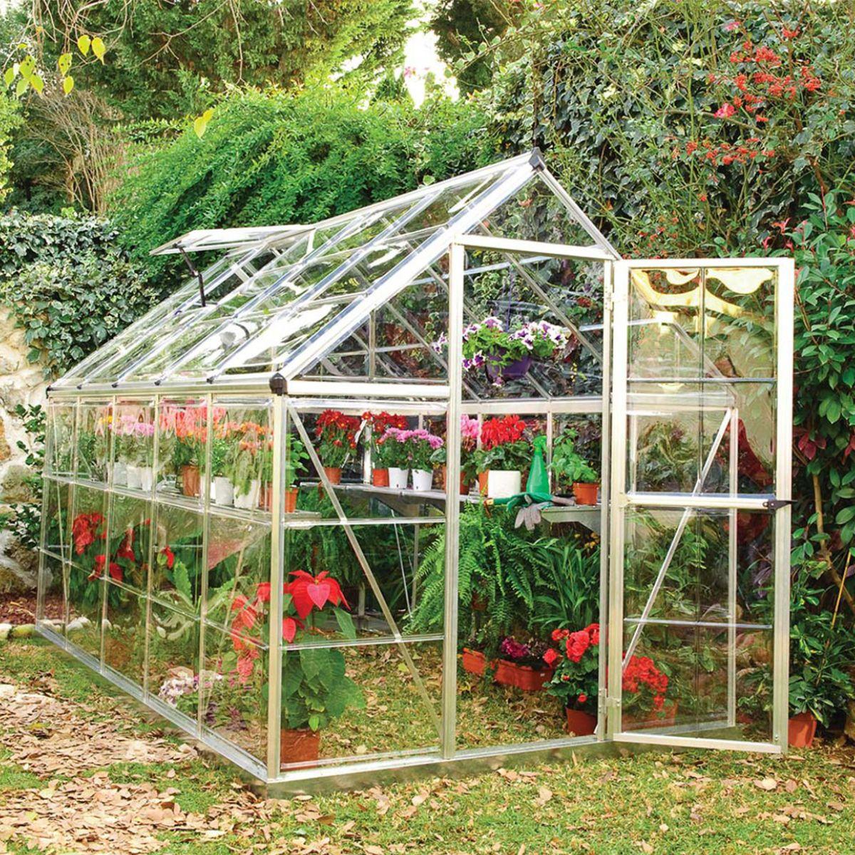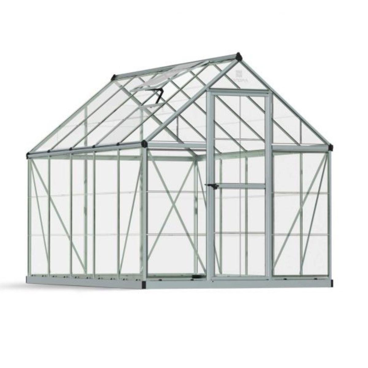 Disfrute de la jardinería en invernadero con el invernadero Harmony 6 'x 10'. Este invernadero de tamaño divertido es lo suficientemente grande para sus sueños de jardinería, pero lo suficientemente pequeño como para adaptarse a su terraza, patio pequeño o balcón. Este invernadero incluye una base perimetral de acero galvanizado resistente a la oxidación, que agrega soporte estructural, estabilidad y alineación. Está hecho de paneles de policarbonato transparentes, prácticamente irrompibles, que son fáciles de deslizar y bloquear en su posición, y un marco de aluminio plateado natural resistente a la oxidación. El respiradero del invernadero ayuda a mantener los niveles de temperatura y humedad deseados y proporciona ventilación. Con su diseño elegante y delicado, el resultado final es hermoso, funcional, resistente, fabricado para durar. • Los paneles de policarbonato cristalino, prácticamente irrompibles, proporcionan más del 90% de transmisión de luz y bloquean los dañinos rayos UV