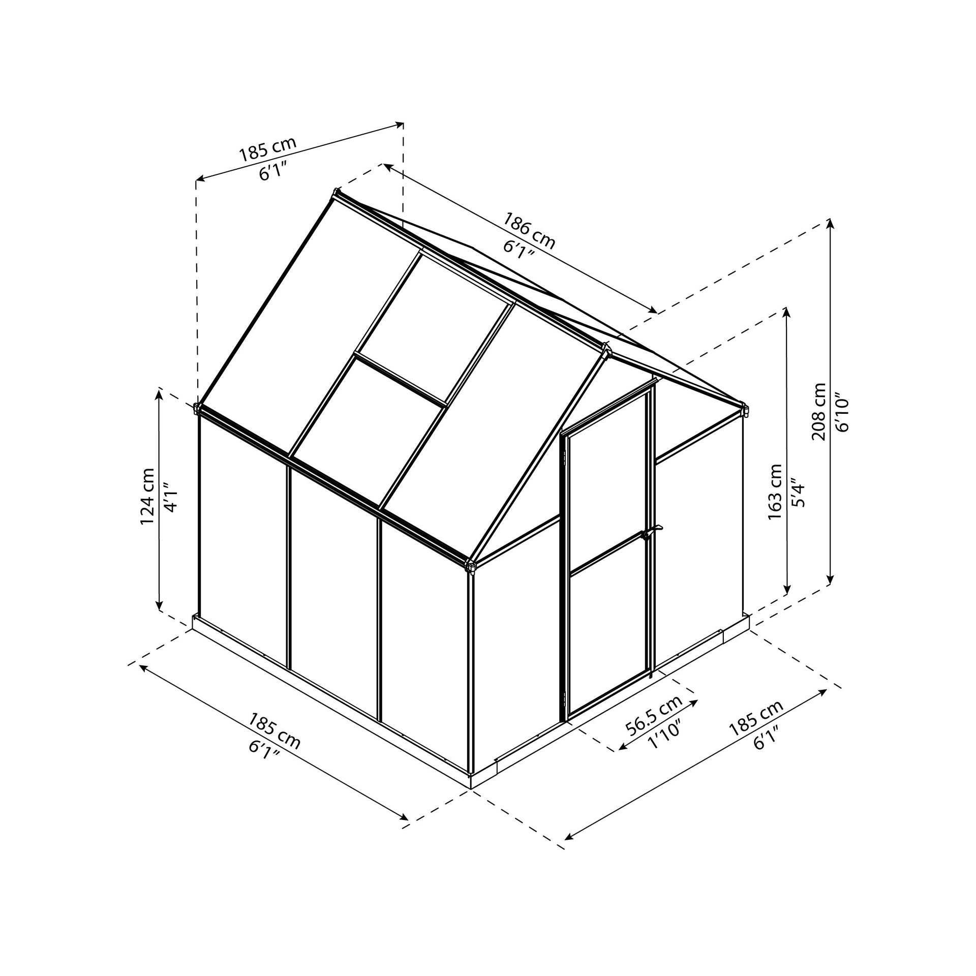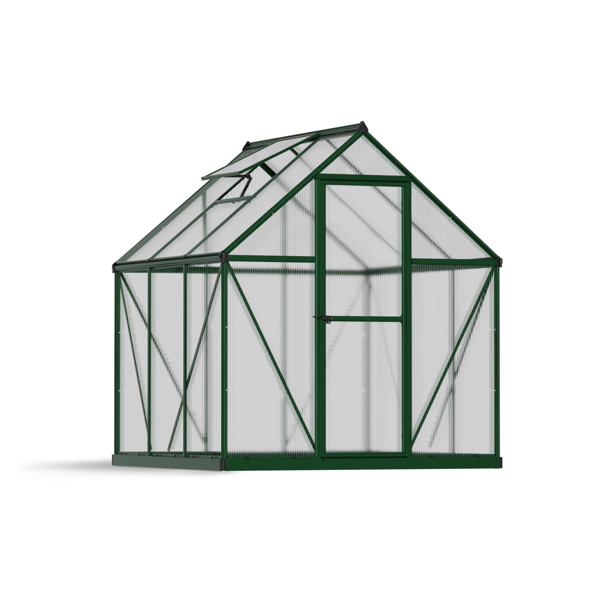 El invernadero Mythos le ayuda a mantener las temperaturas niveladas y a dispersar la luz solar para las plantas sensibles. Es un invernadero de diseño elegante, con paneles de policarbonato de pared doble, prácticamente irrompibles, y un marco de aluminio resistente a la oxidación con recubrimiento de polvo verde de alta resistencia. El invernadero Mythos es elegante y práctico, perfectamente diseñado para adaptarse a espacios más pequeños y proteger sus plantas de los elementos para que pueda cultivar durante más meses al año • Paneles de policarbonato de pared doble, prácticamente irrompibles, que proporcionan más del 70% de transmisión de luz