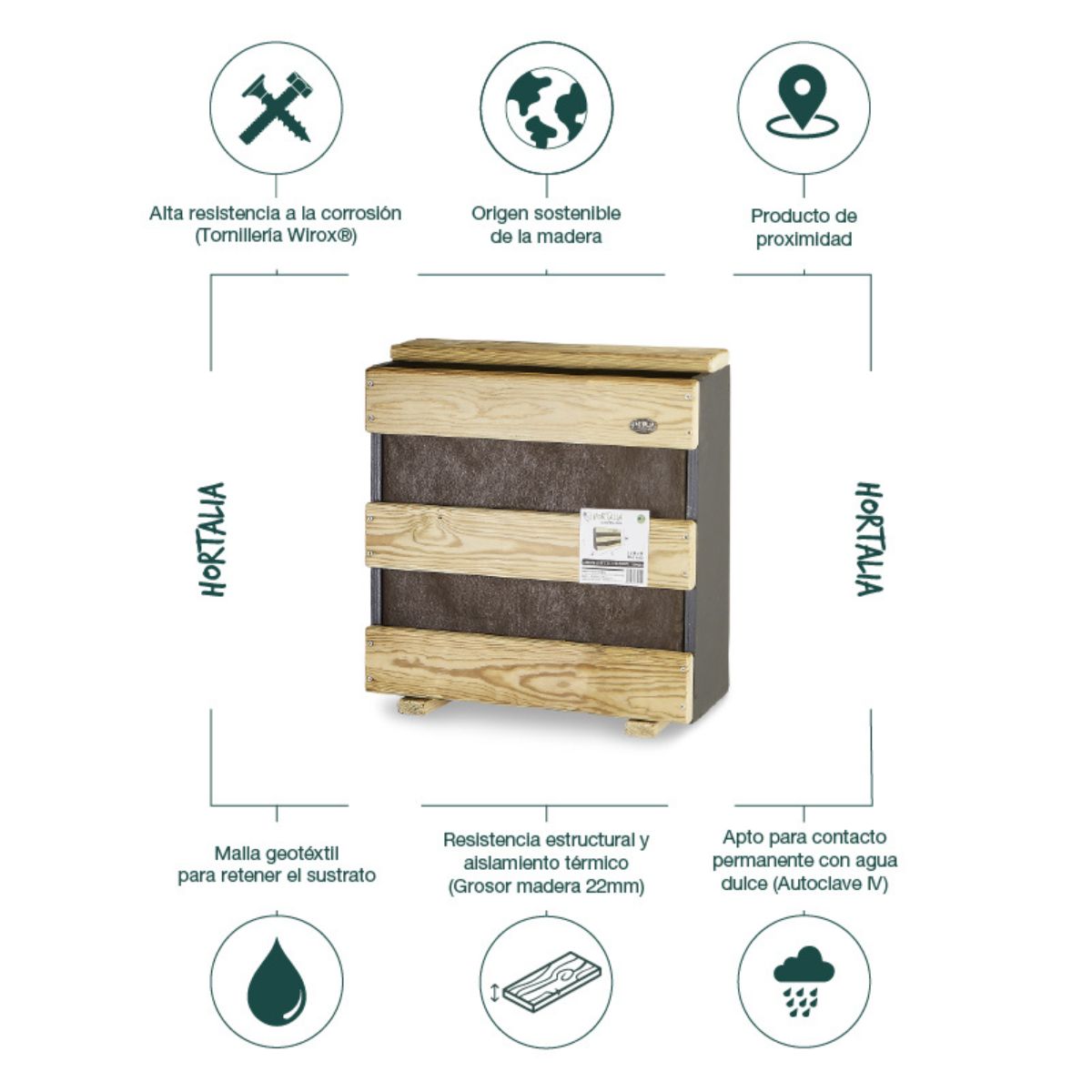 No incluye kit de anclaje para pared. Puedes adquirir el KIT Jardín Vertical - Anclaje Pared