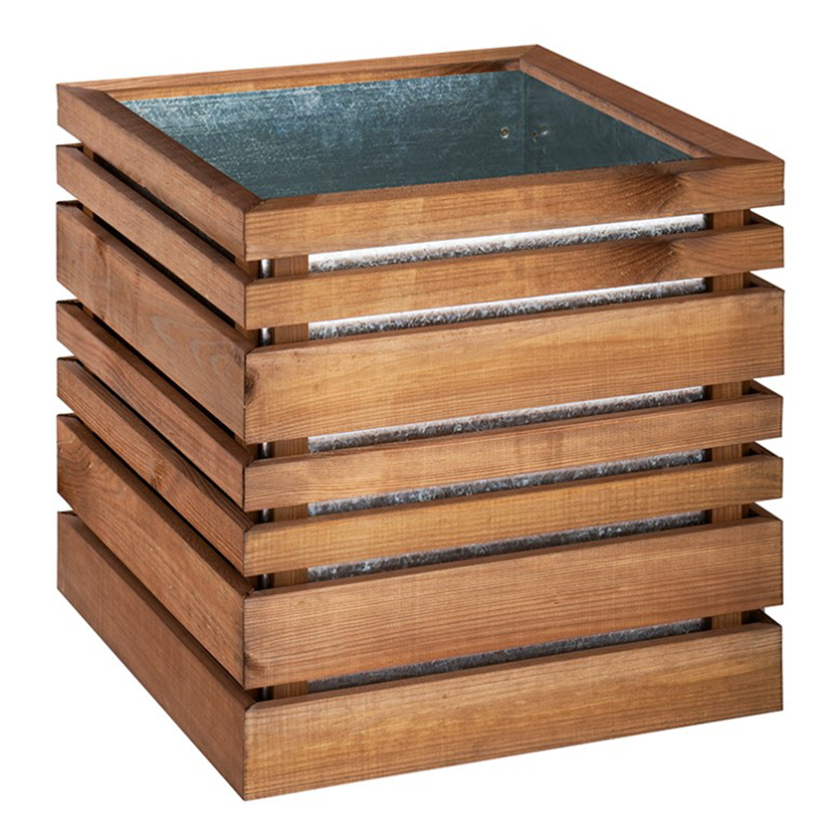 Perteneciente a la colección LIGN Z, esta jardinera cuadrada tiene un aspecto moderno y sofisticado. Fabricada con listones de madera europea teñida de marrón cuidadosamente ensamblados, esta jardinera no sólo es elegante sino también duradera. El interior de acero galvanizado sustituye al geotextil tradicional y garantiza un drenaje óptimo del agua gracias a un orificio central. Además, las patas de caucho negro protegen el suelo de arañazos y añaden un toque de refinamiento a su diseño de exterior. Esta mezcla de madera y acero confiere a sus espacios un aspecto contemporáneo al tiempo que preserva su carácter natural.