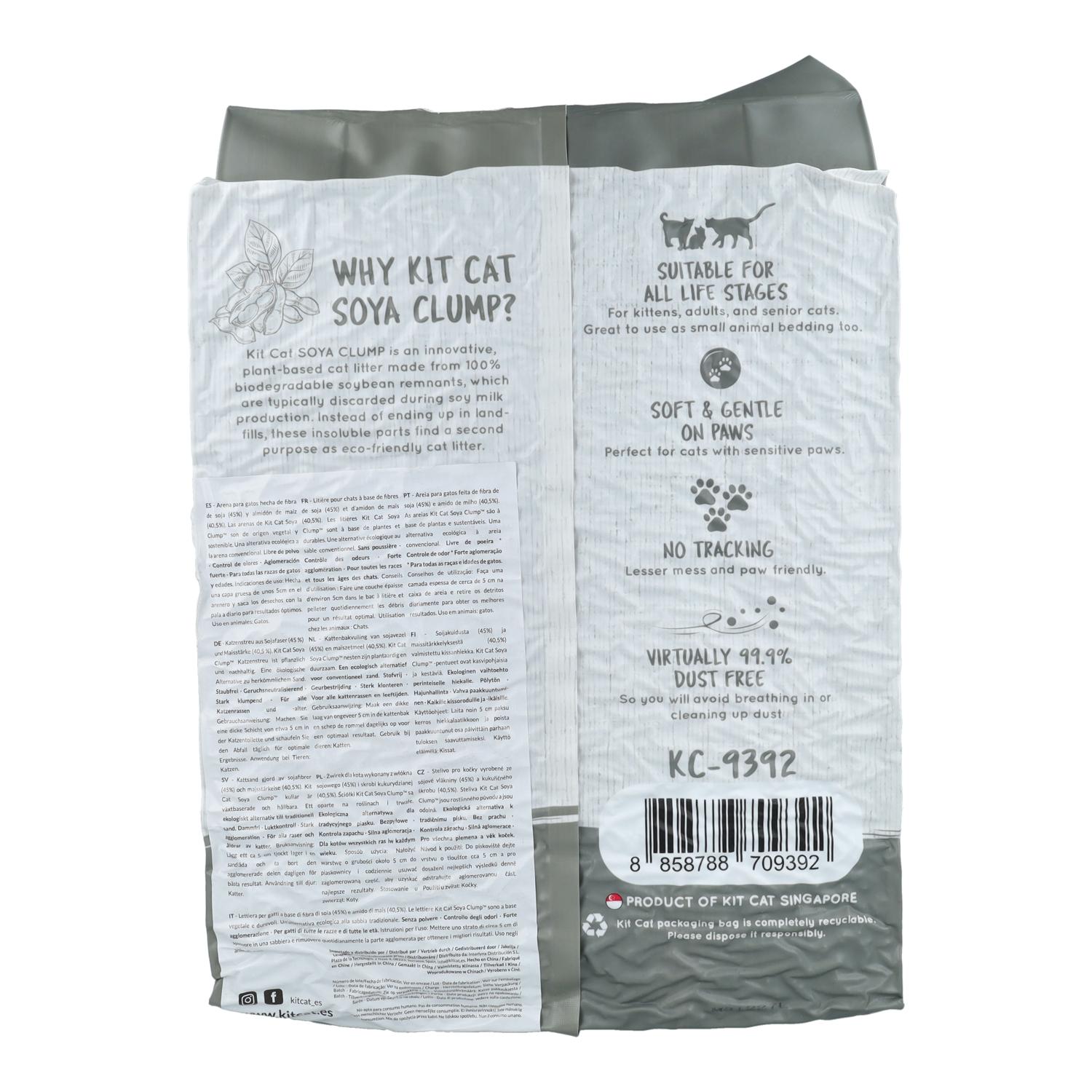 SOYA CLUMP es desechable por el inodoro, fácil de recoger y su rápida absorción protege al gato y a la caja de arena del mal olor a orina. La arena para gatos de Kit Cat se produce con soja natural de calidad alimentaria que no contiene productos químicos ni colorantes sintéticos, por lo que es segura para los gatos y para el hogar en general.