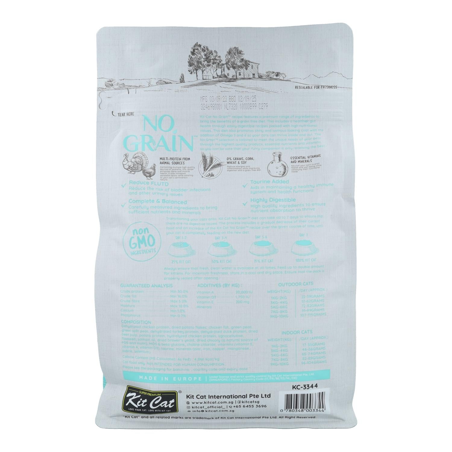 La transición a nuestro pienso No Grain puede llevar hasta 7 días para garantizar que no haya problemas digestivos. El proceso incluye una disminución gradual de su alimento actual y un aumento del pienso Kit Cat durante el transcurso del tiempo dado, hasta que tu gato se esté alimentando completamente con la nueva dieta.