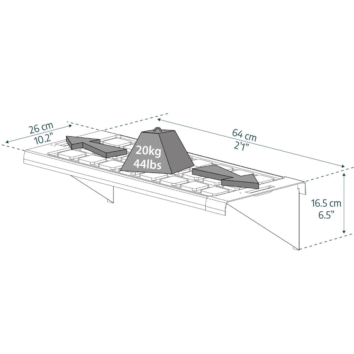 Los estantes están fabricados con PVC duradero y de bajo mantenimiento. El kit incluye dos estantes Se monta en la estructura del invernadero y se puede ajustar fácilmente Incluye todos los herrajes necesarios para la instalación Cada estante sostiene hasta 20 kg de peso distribuido uniformemente Es compatible con todos los invernaderos Palram