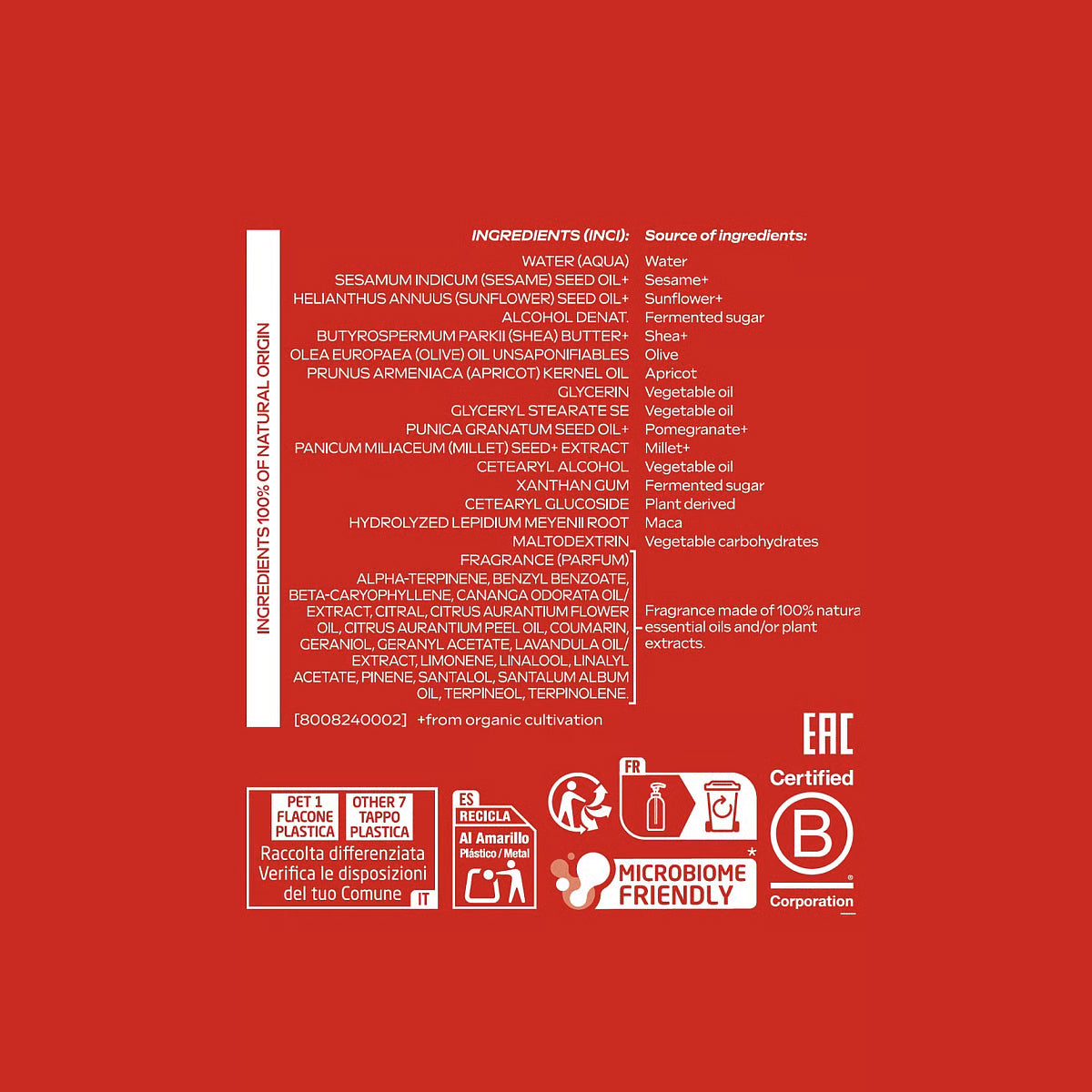 Además, combate los radicales libres, ayudando a prevenir los signos del envejecimiento cutáneo, y es microbiome-friendly, respetando el equilibrio natural de la piel.