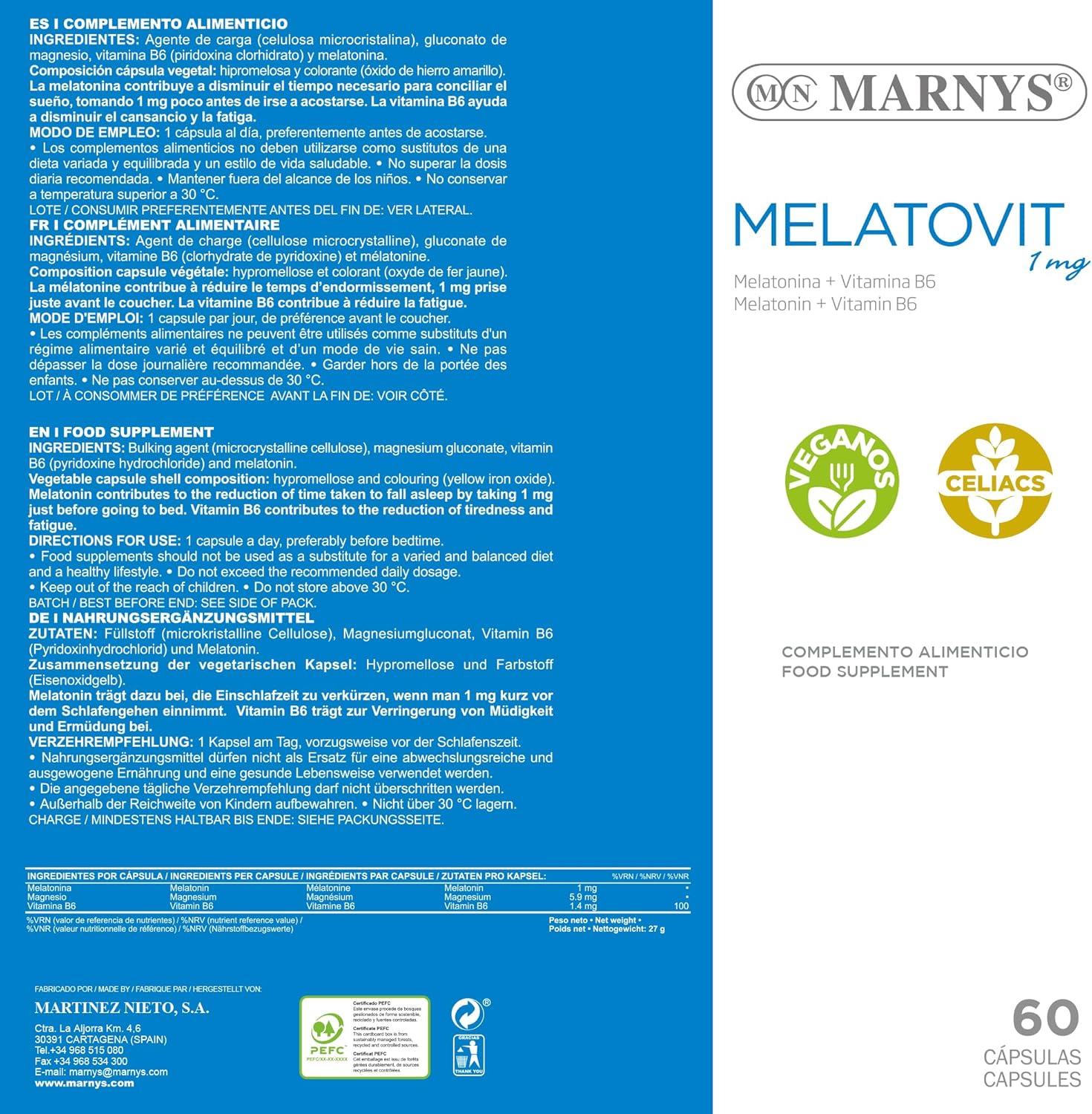 Toda la información sobre "Melatovit 60 Cápsulas Marnys"