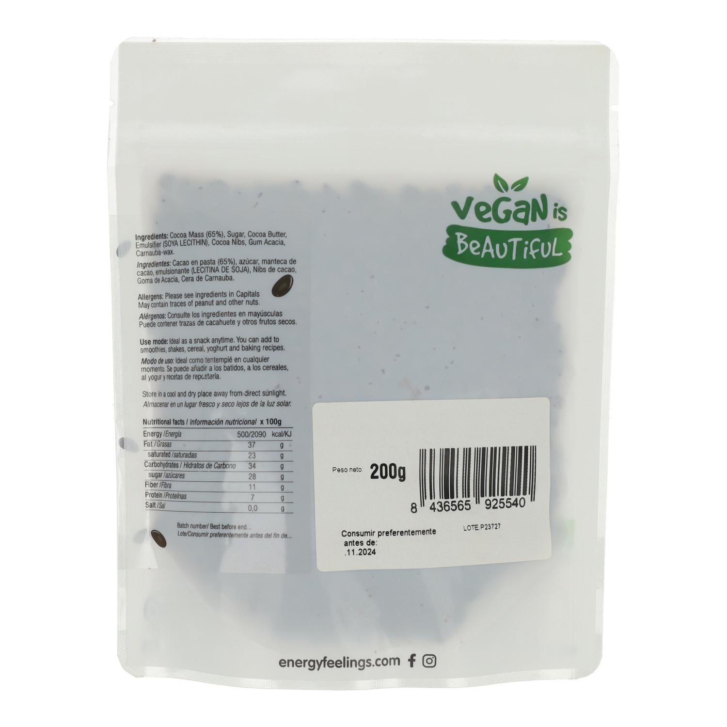 Nibs bañados en chocolate negro 65% – Energy Feelings (200 g)