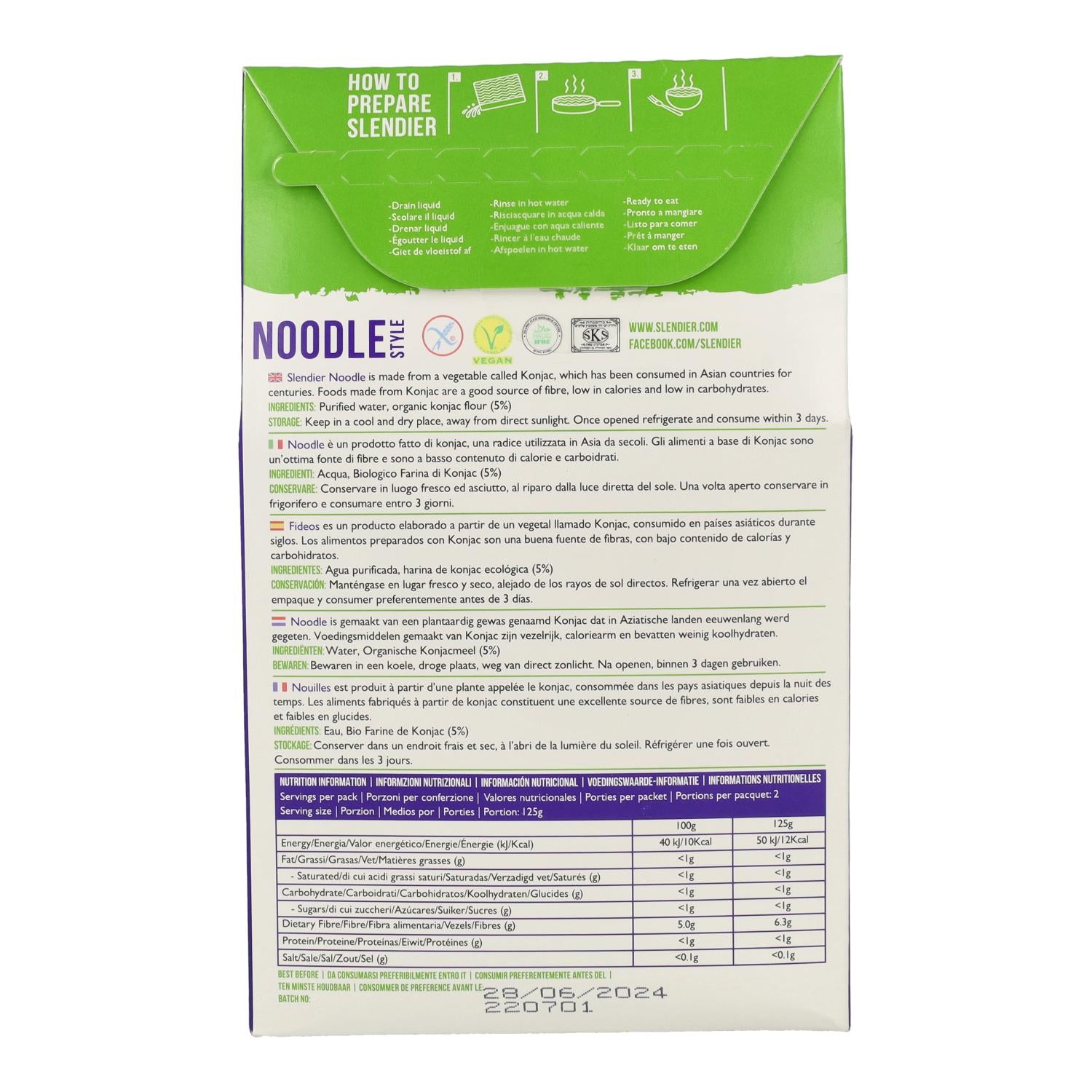 Toda la información sobre "Noodles de Konjac bio Slendier 250 g"