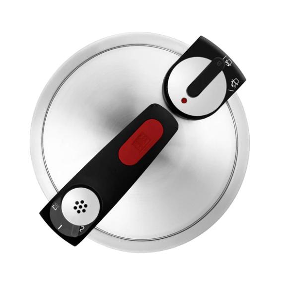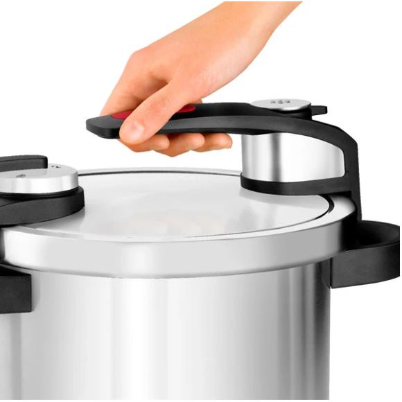 Dispone de un diseño innovador con dos programas de cocción, 3 sistemas de seguridad a presión y 1 sistema de bloqueo de apertura, cumpliendo con la normativa CE.