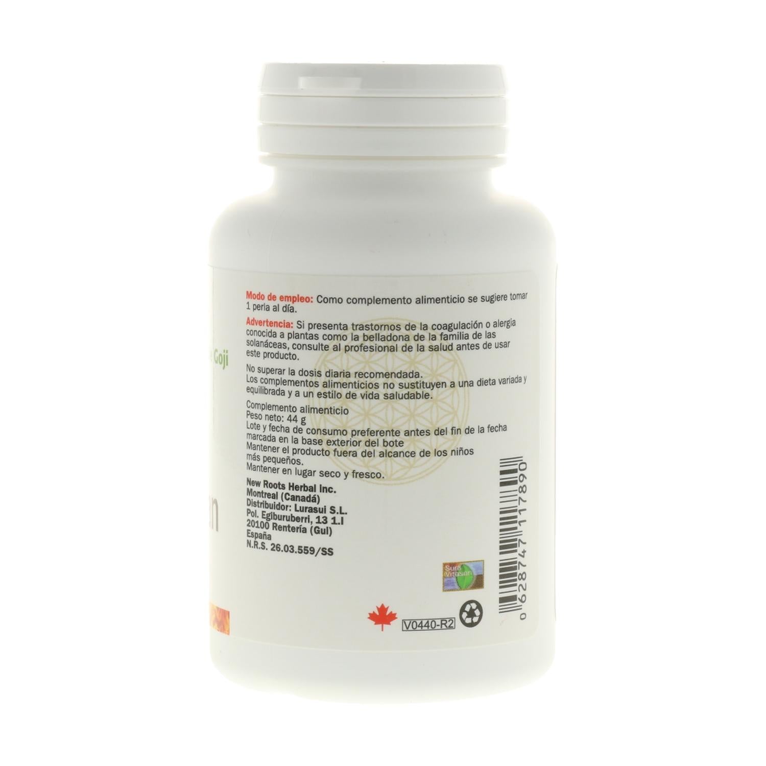 1 perla al día. Consulte al profesional de la salud antes de usar este producto en caso de embarazo o lactancia, si presenta trastornos de la coagulación o alergia conocida a plantas como la belladona de la familia de las solanáceas. Consulte a su médico o farmacéutico si está en tratamiento con anticoagulantes.