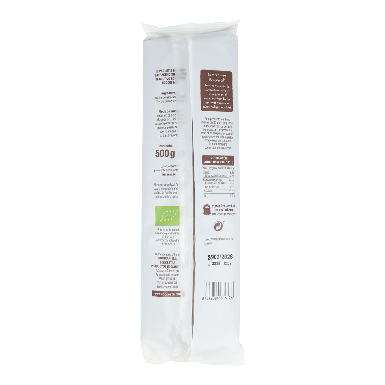 Toda la información sobre "Pack 2x Espaguetis de Trigo Sarraceno sin gluten BIO Ecocesta, 500 g"