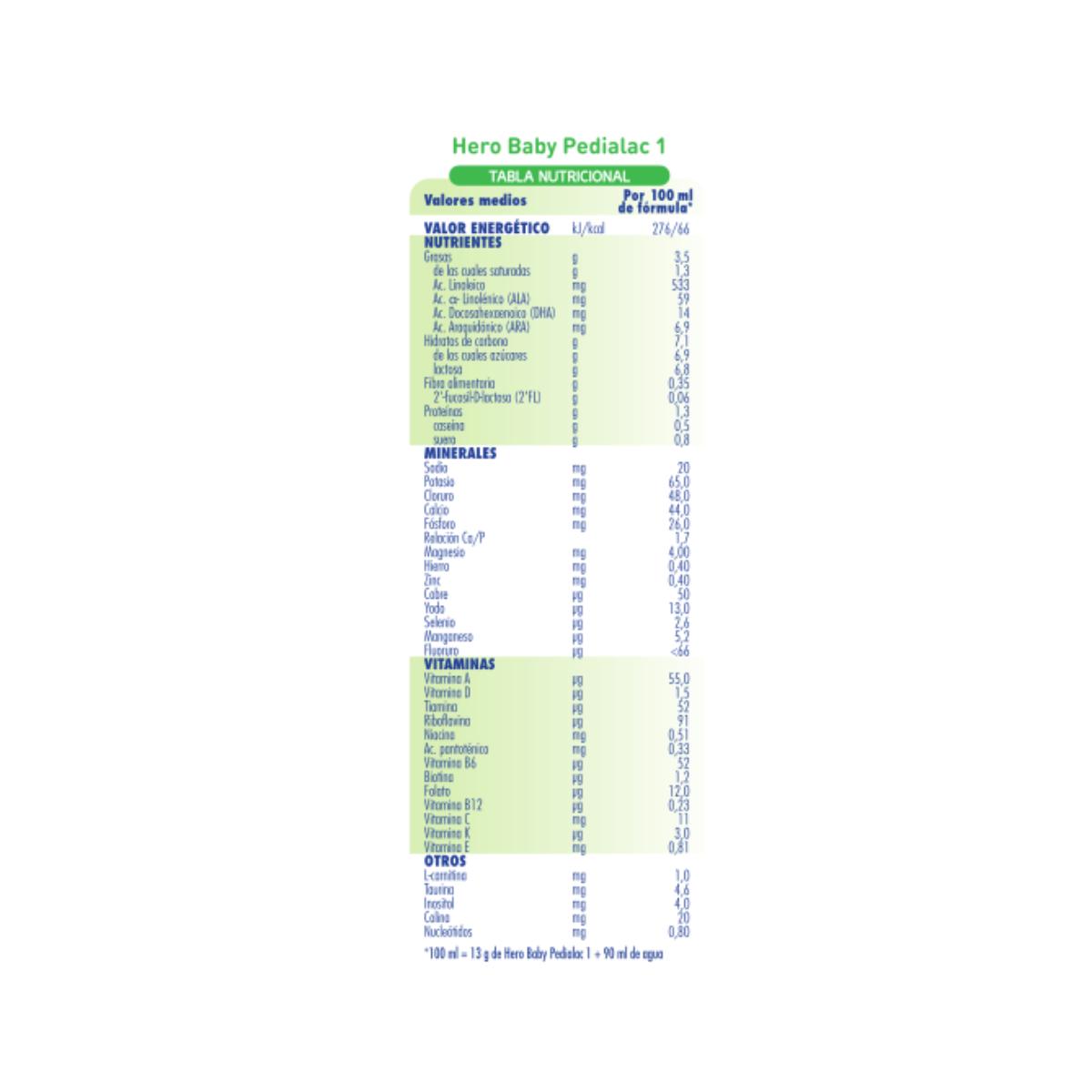 La leche infantil de inicio 1 Pedialac de Hero Baby aporta los ingredientes necesarios para el óptimo desarrollo de tu bebé, destacando sus lípidos lácteos, DHA, ARA, GOS y nucleótidos, todos ellos presentes naturalmente en la leche materna. Indicada a partir de su nacimiento.