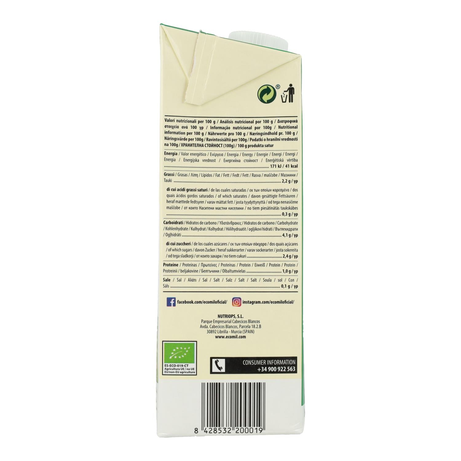 Toda la información sobre "Pack 6 uds Bebida Vegetal de Almendra endulzada con Ágave BIO EcoMil 1L"