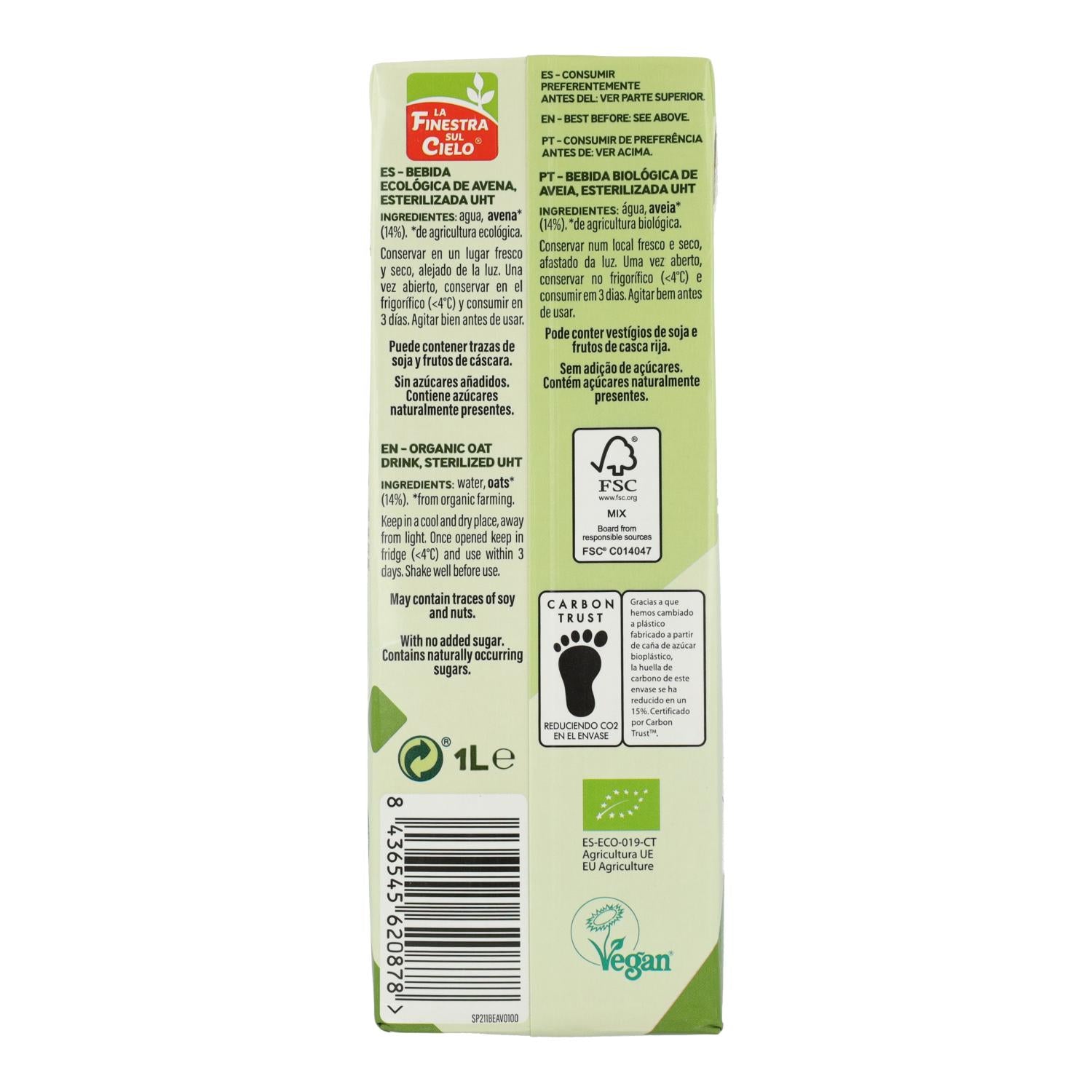 Toda la información sobre "Pack 6 x Bebida de Avena La Finestra Sul Cielo 1 L"