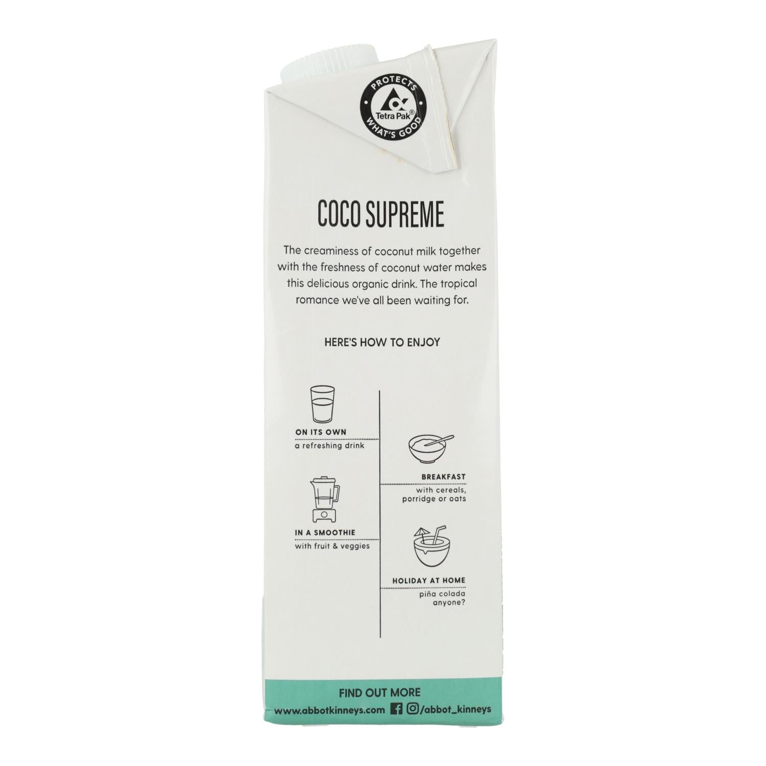 Pack 2x Bebida vegetal coco supreme Bio, Abbot Kinney, 1L
