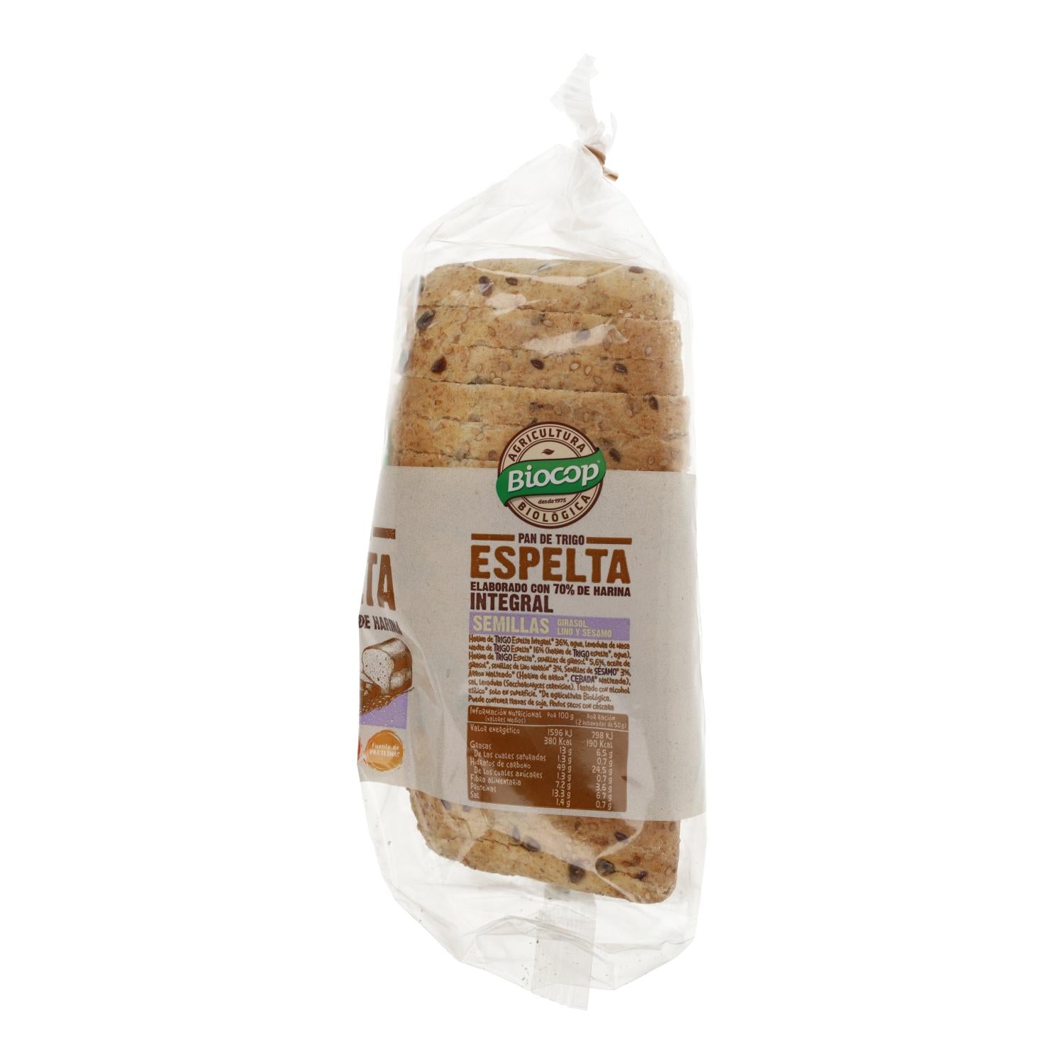 Toda la información sobre "Pan de Molde Espelta Integral con Semillas Biocop 400 g"