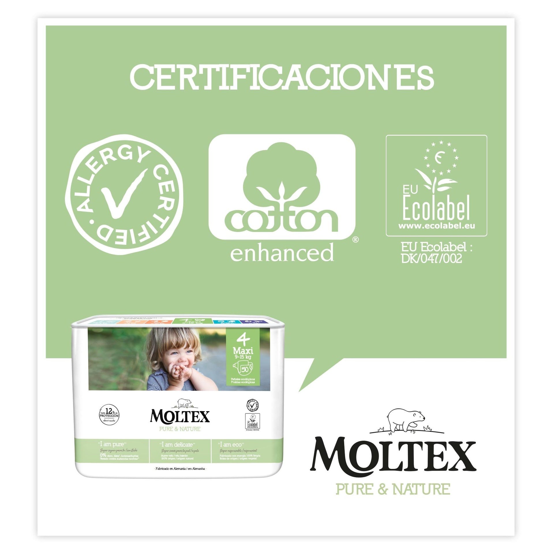Pañales Moltex Pure & Nature T4 (9-15 kg), 50 Uds