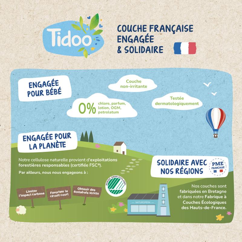 Los pañales desechables ecológicos Tidoo son unos pañales desechables hecho en Francia, biodegradables al 50 %, que cumplen con las exigencias de los padres y del planeta.