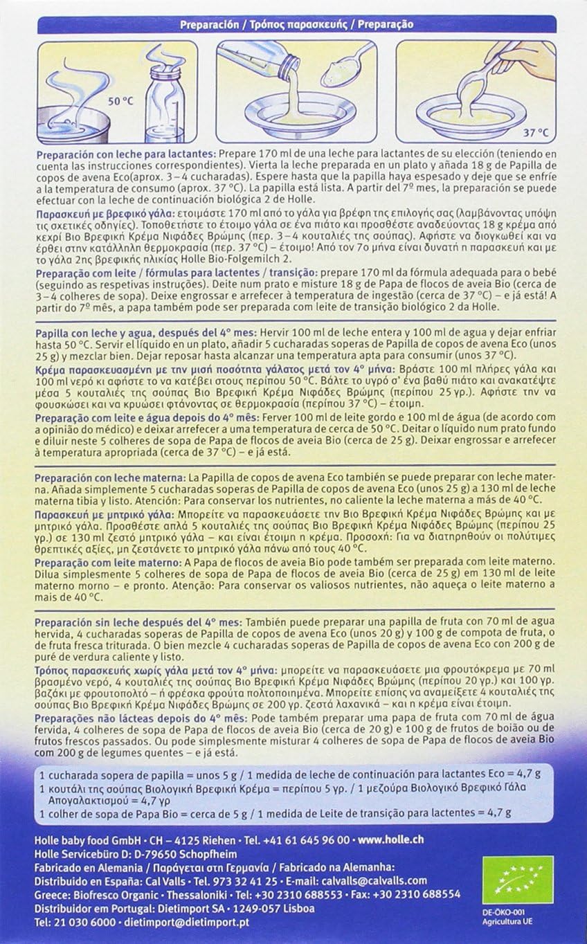Toda la información sobre "Papilla BIO de copos de avena +4 meses Holle 250 g"
