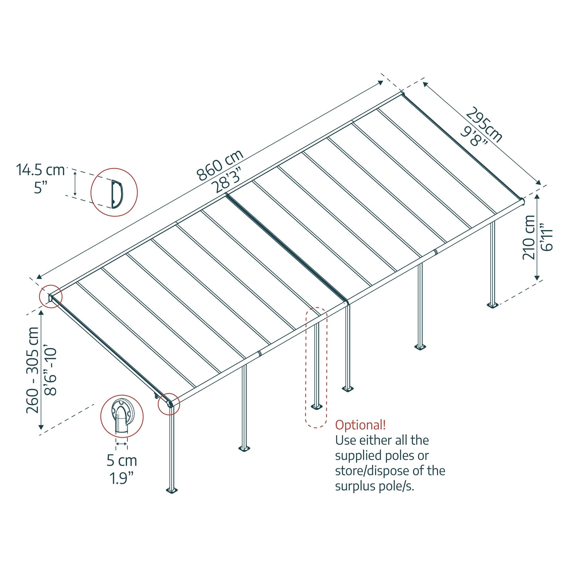 Toda la información sobre "Pérgola adosada Capri 299x860 cm gris Canopia by Palram"