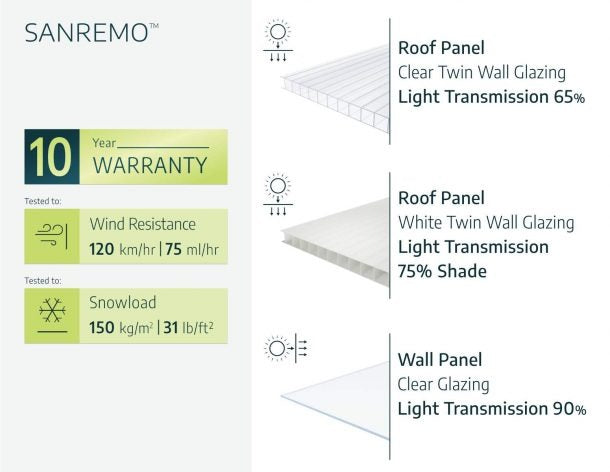 Toda la información sobre "Pérgola adosada cerrada aluminio San Remo gris 300x435 cm Canopia by Palram"