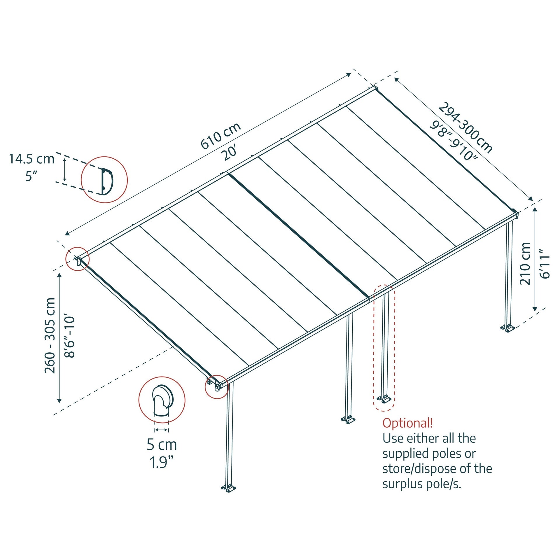 Toda la información sobre "Pérgola adosada Feria 300x61 cm gris"