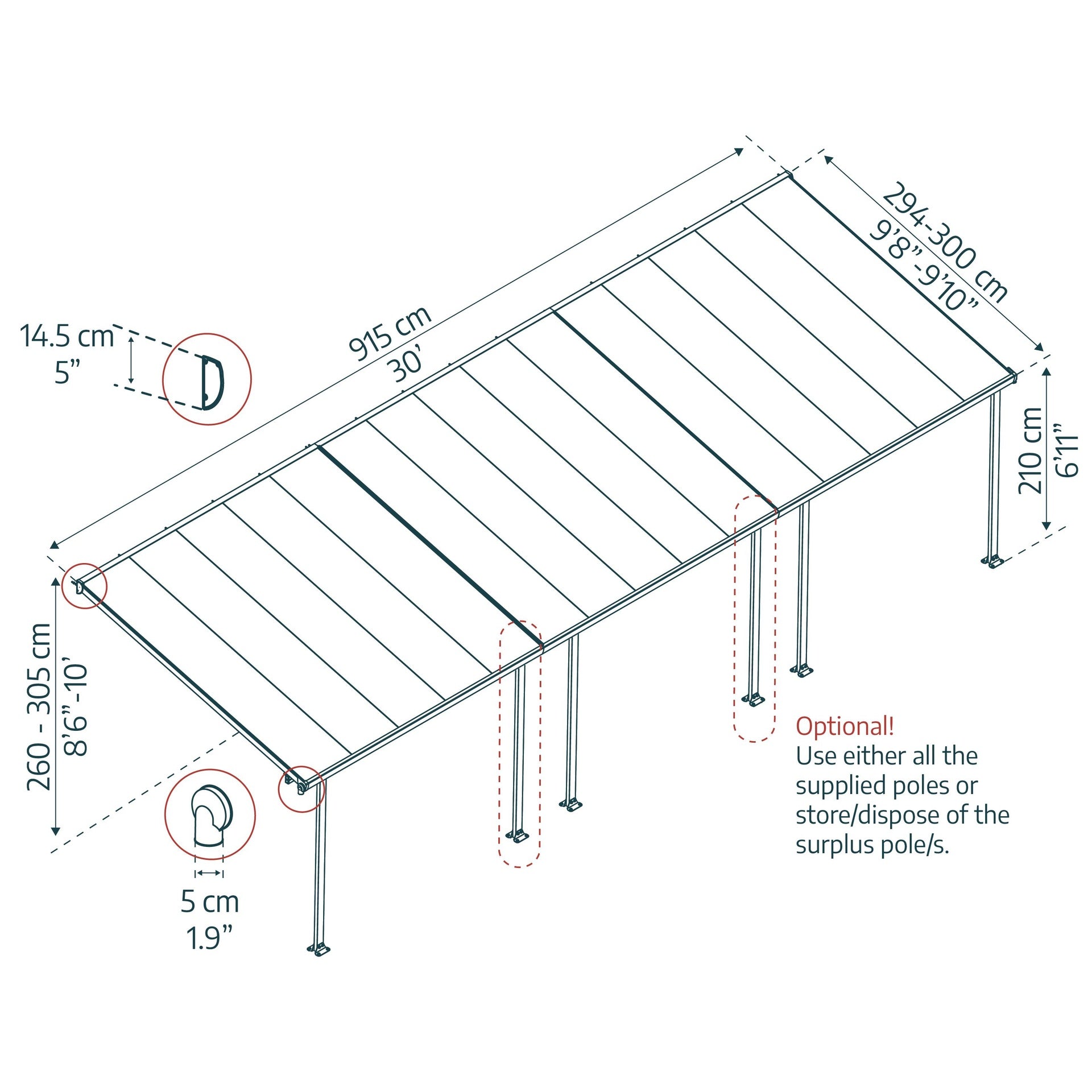 Pérgola adosada Feria 300x915 m gris