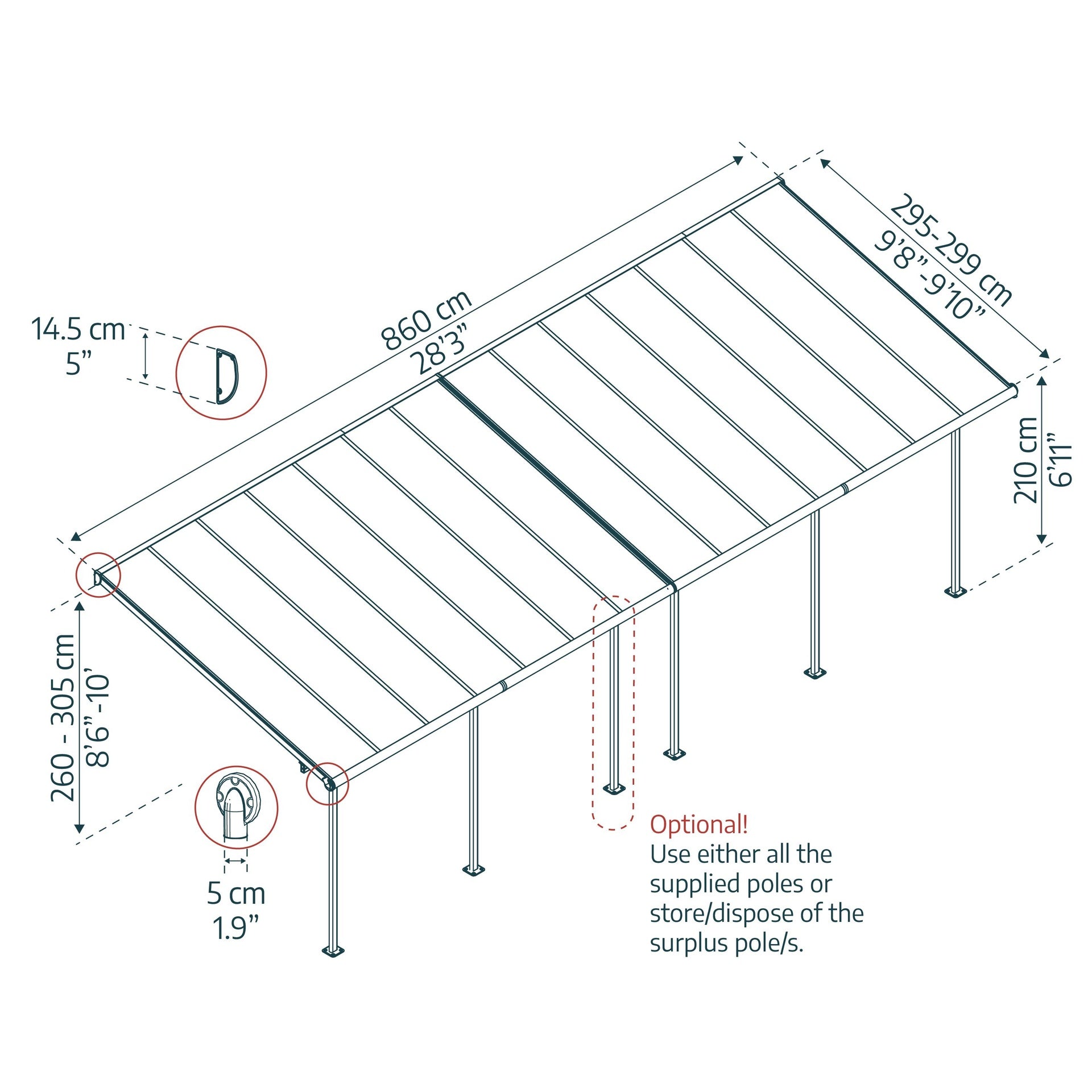 Toda la información sobre "Pérgola adosada Sierra 299x860 m gris"