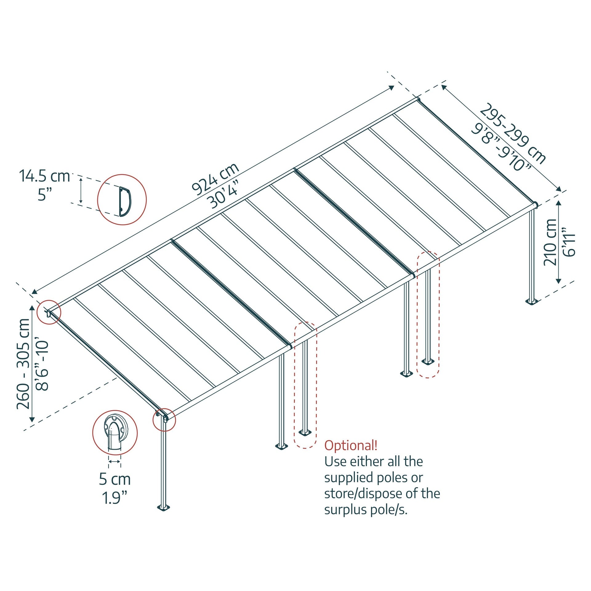 Toda la información sobre "Pérgola adosada Sierra 299x924 cm gris"
