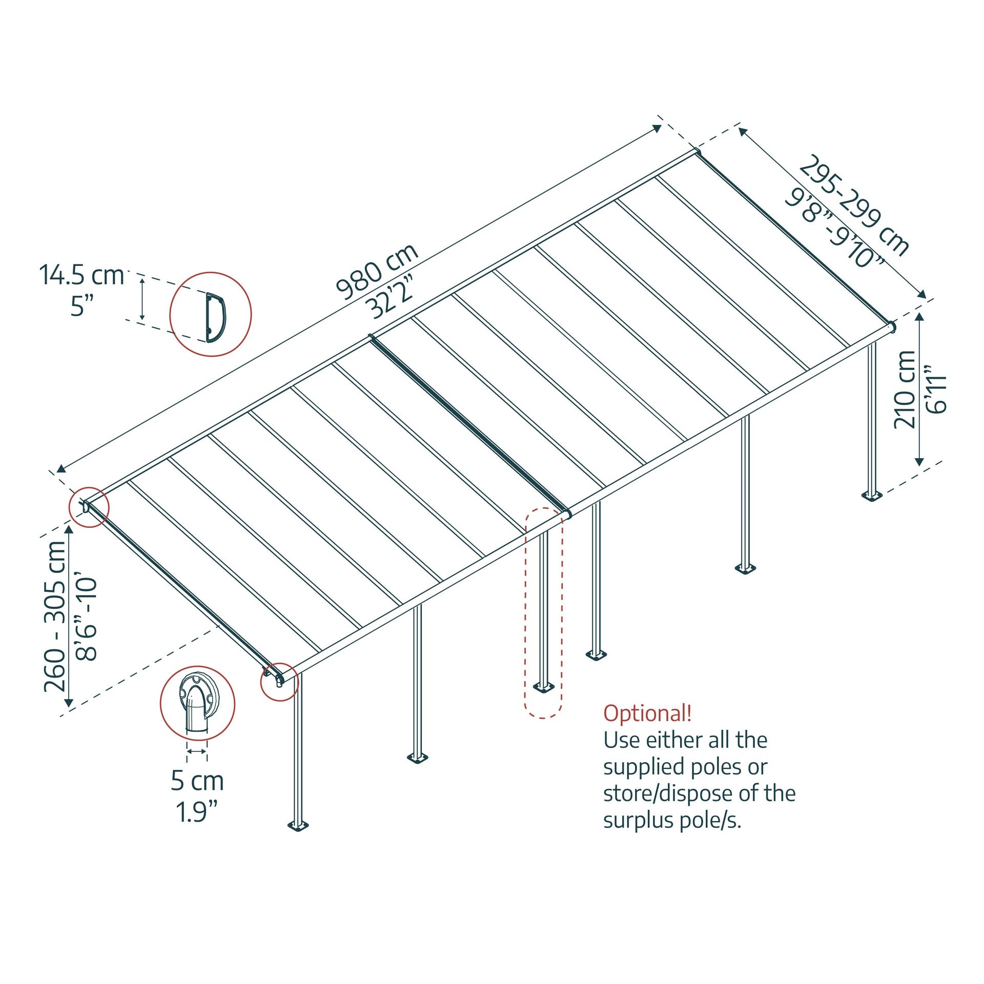Toda la información sobre "Pérgola adosada Sierra 299x980 cm gris"