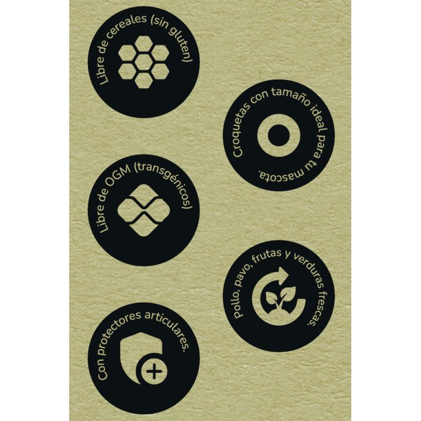Alimento completo extrusionado libre de cereales para perros adultos de todas las razas.