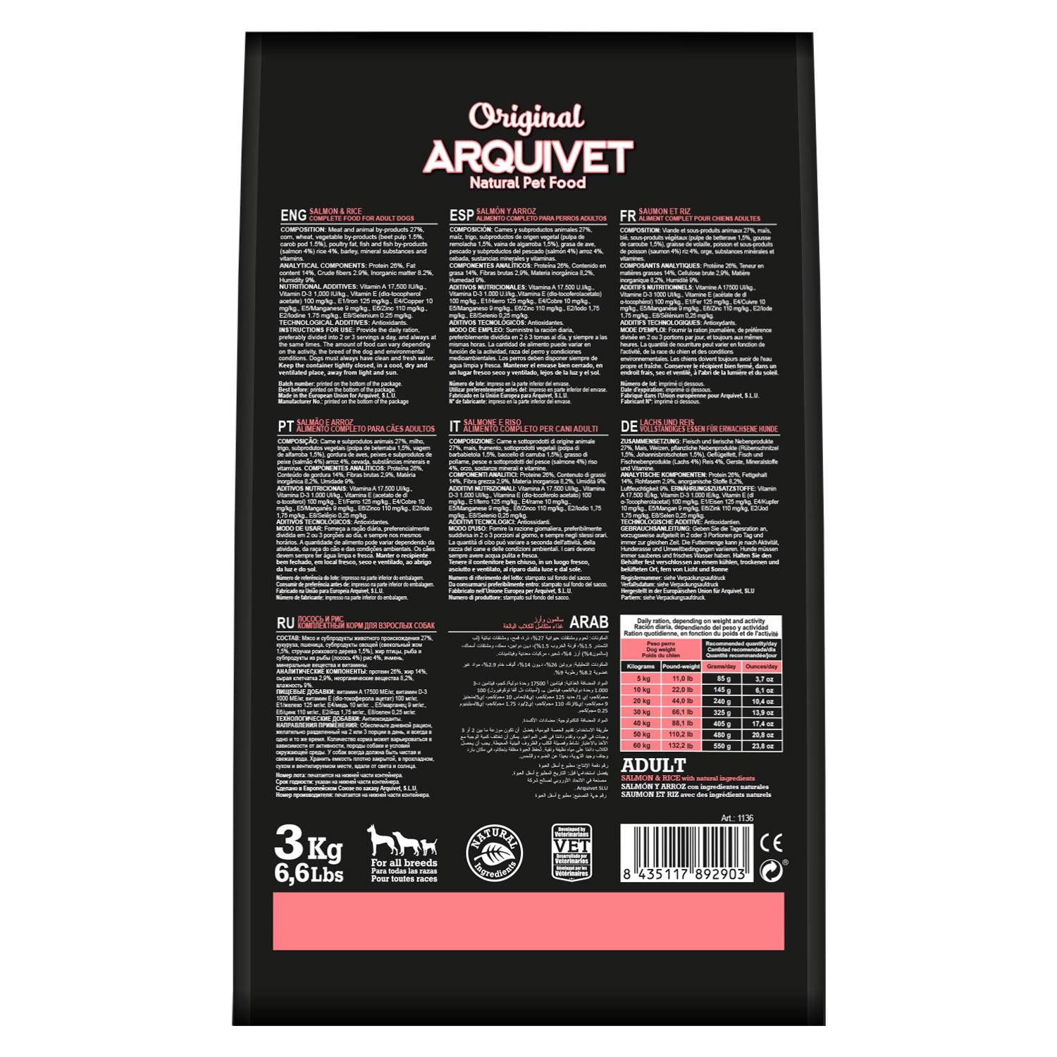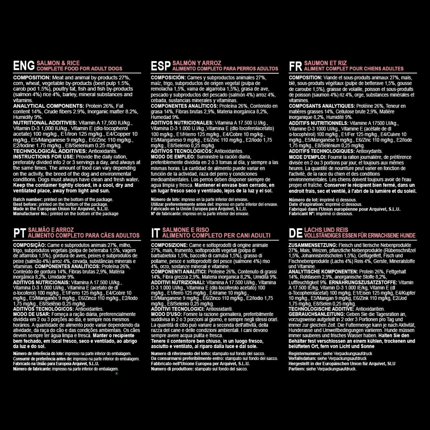 Toda la información sobre "Pienso para perros Original Salmón y arroz Arquivet 12 Kg 12 kg"