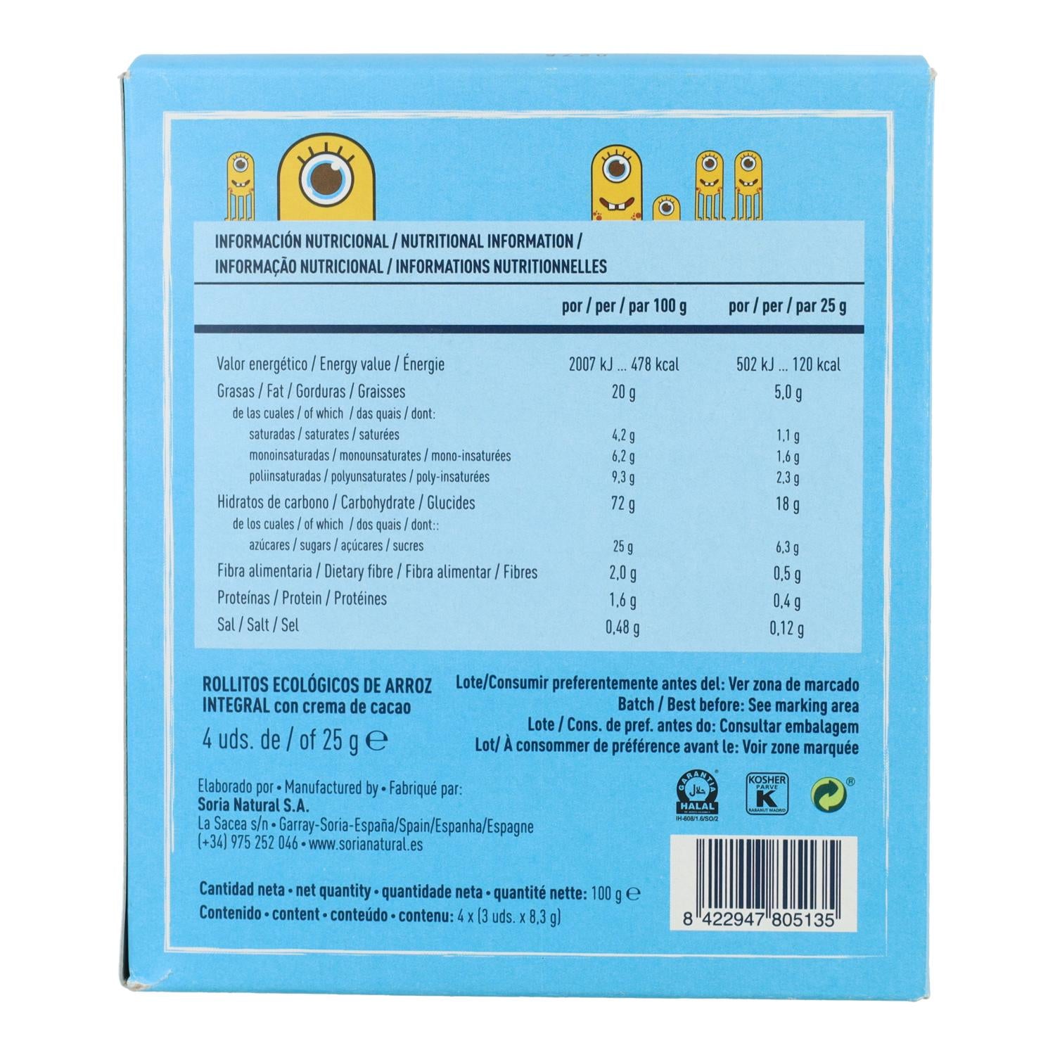 Toda la información sobre "Rollitos de arroz con crema de cacao Soria Natural 4 x 25 g"