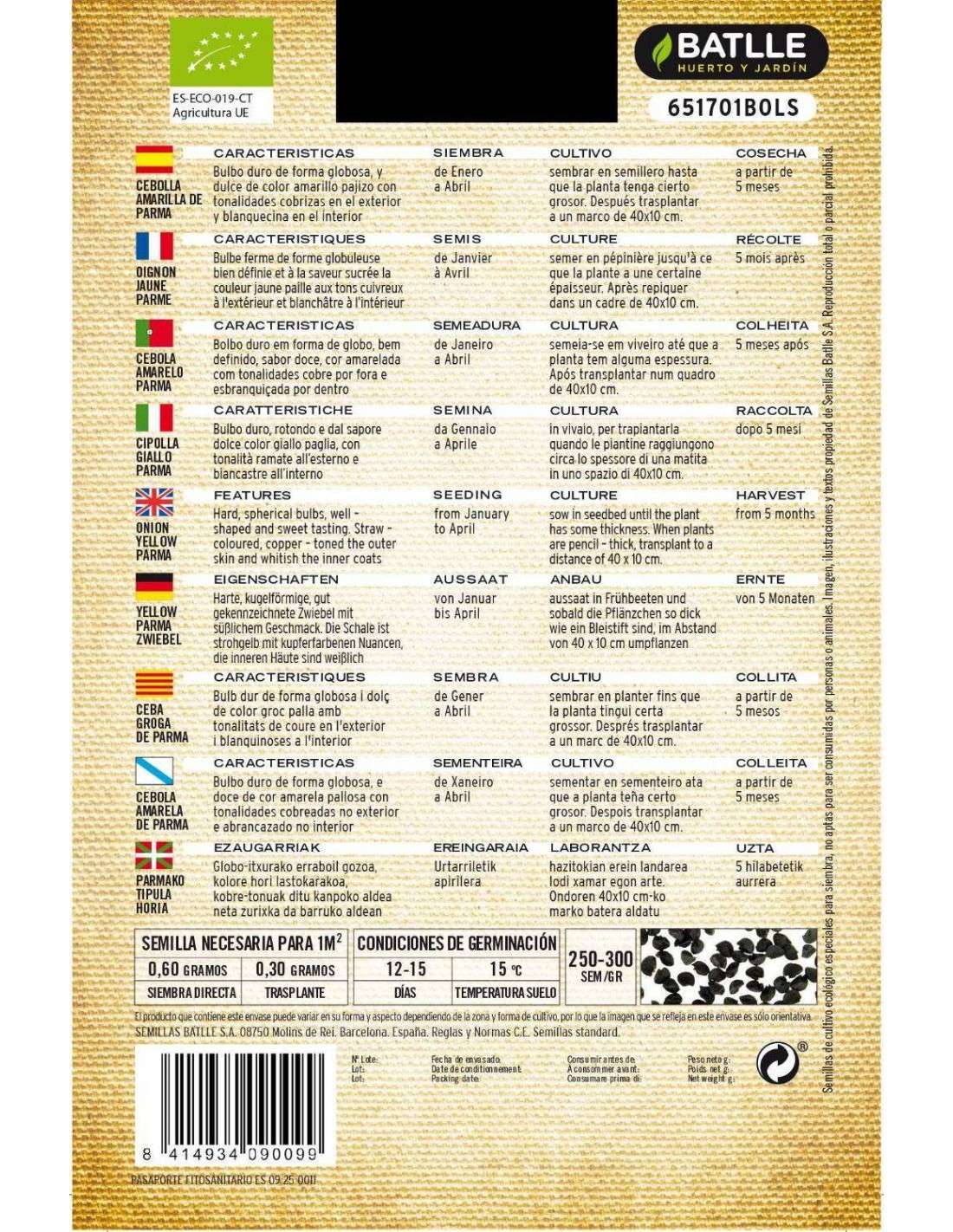 Toda la información sobre "Semillas de Cebolla amarilla de Parma ecológicas Batlle"