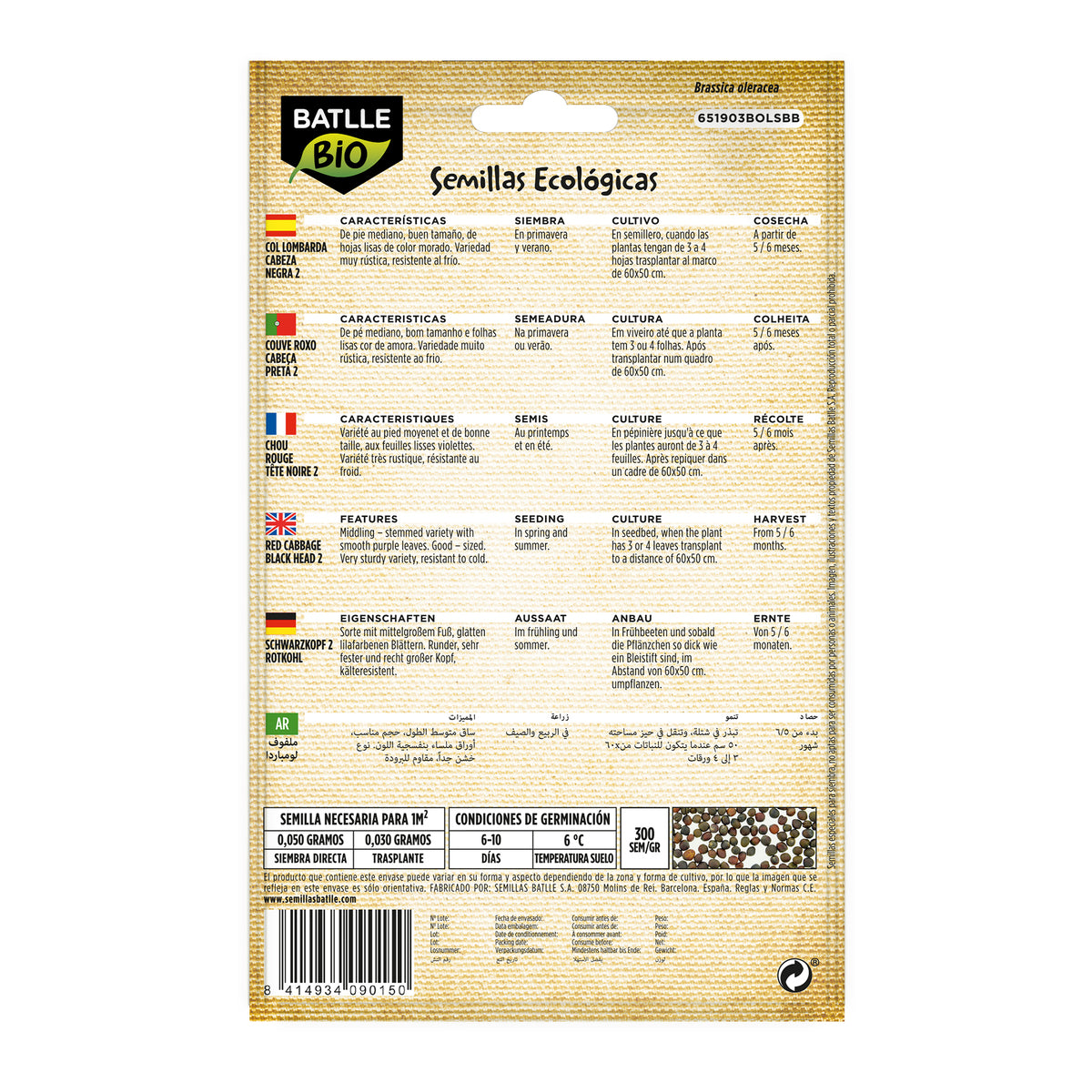 Toda la información sobre "Semillas de de Col lombarda cabeza negra 2 ecológicas Batlle"