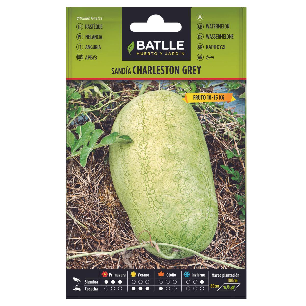 Las semillas de Sandía Charleston Grey Batlle producen plantas vigorosas, de crecimiento rastrero y muy productivas, que desarrollan frutos grandes, alargados y de piel verde grisácea, con pulpa roja intensa, dulce, firme y muy jugosa. Esta variedad americana es famosa por su excelente sabor, gran tamaño y resistencia al transporte, siendo perfecta para cultivos al aire libre en zonas cálidas. Ideal para consumo en fresco durante el verano, aportando frescura y dulzura natural en cada bocado.