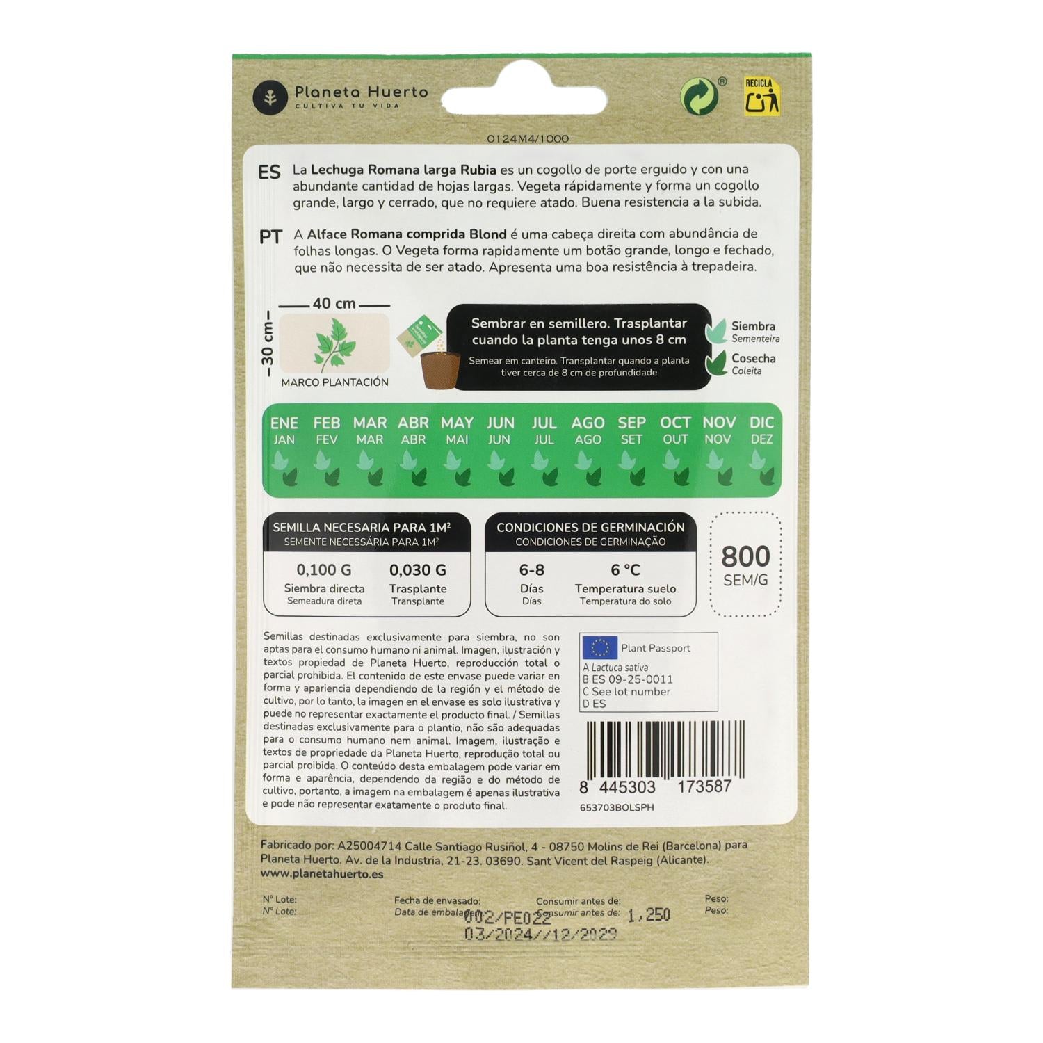 Semillas de Lechuga Romana ecológicas Planeta Huerto