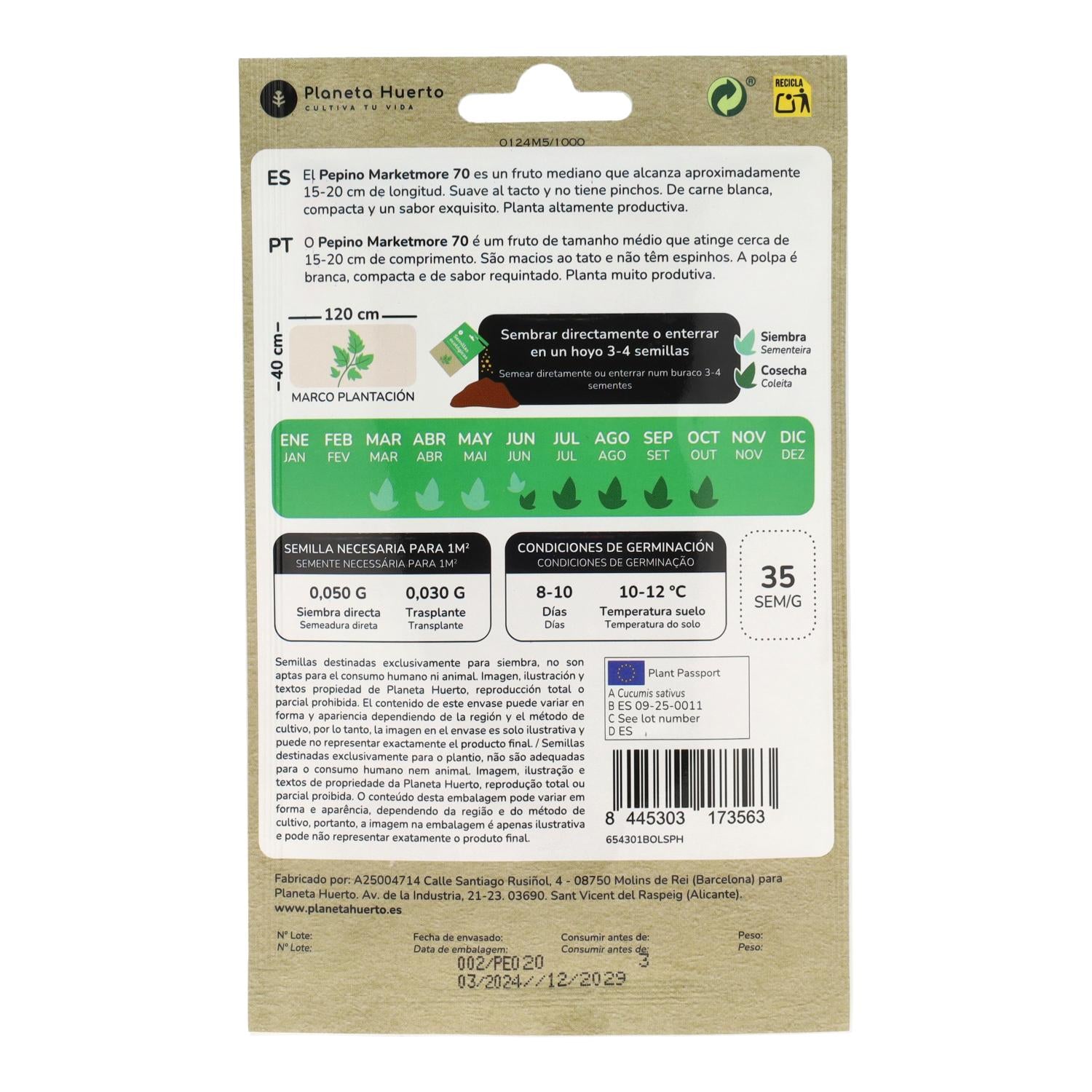Toda la información sobre "Semillas de Pepino marketmore ecológicas Planeta Huerto"