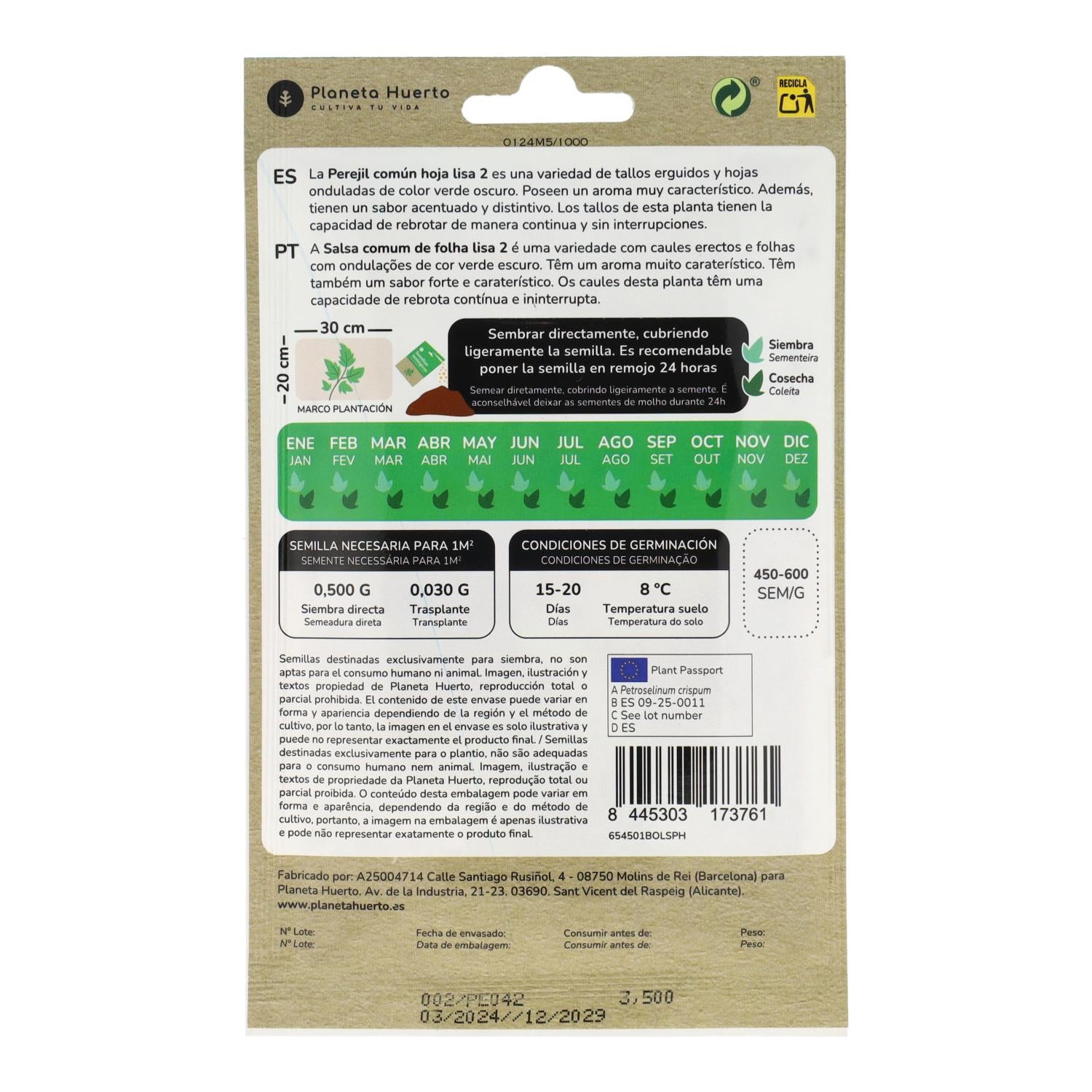Toda la información sobre "Semillas de Perejil común hoja lisa ecológicas Planeta Huerto"