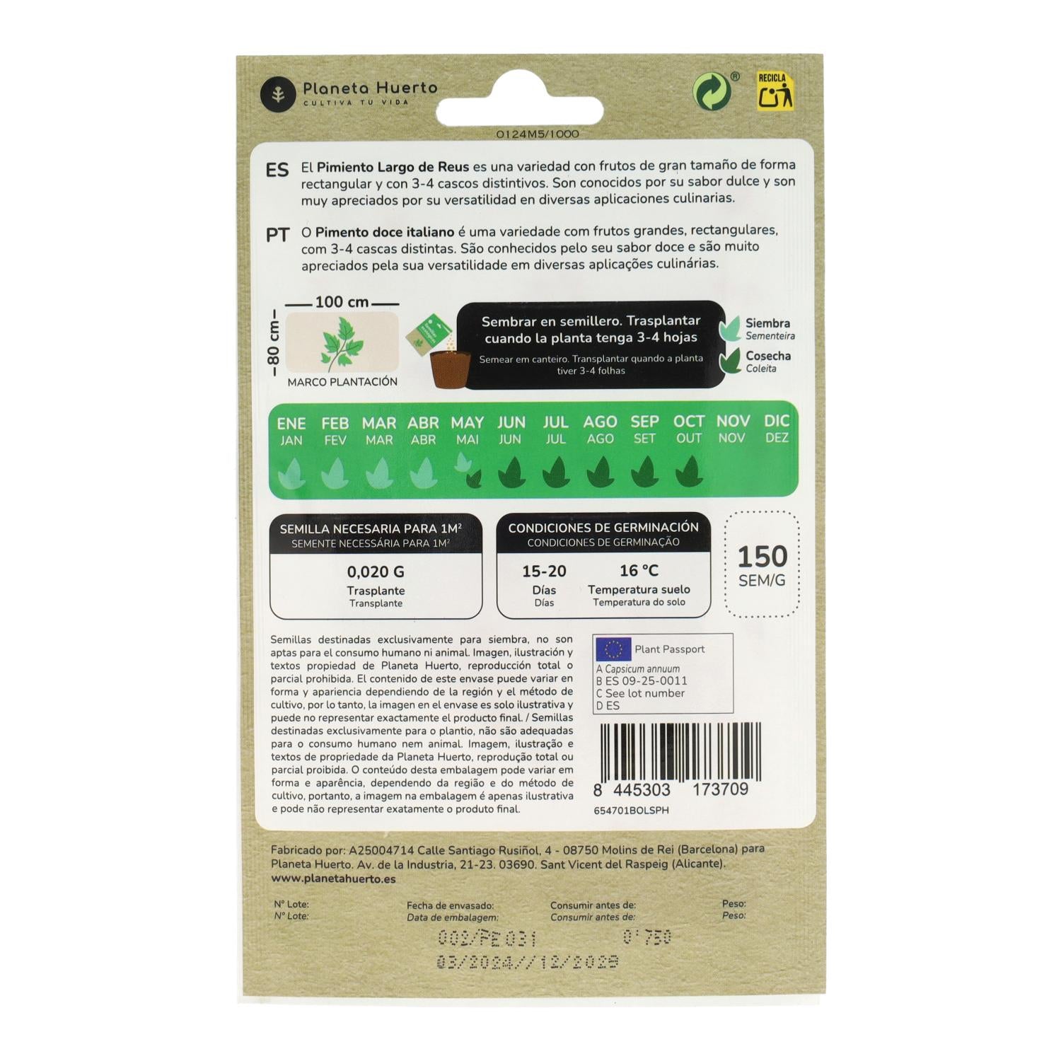 Toda la información sobre "Semillas de Pimiento largo de Reus ecológicas Planeta Huerto"
