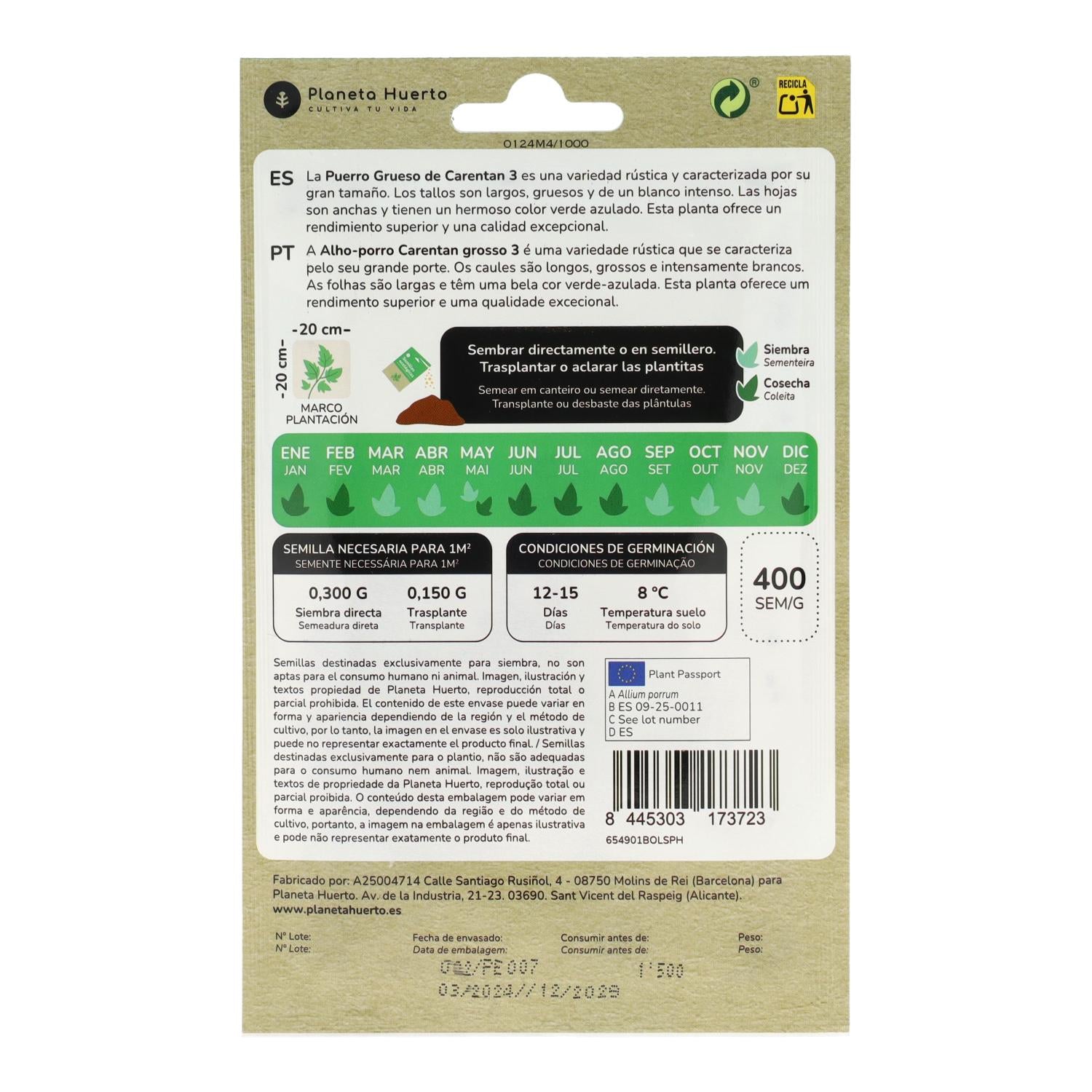 Semillas de Puerro grueso de Carentan ecológicas Planeta Huerto