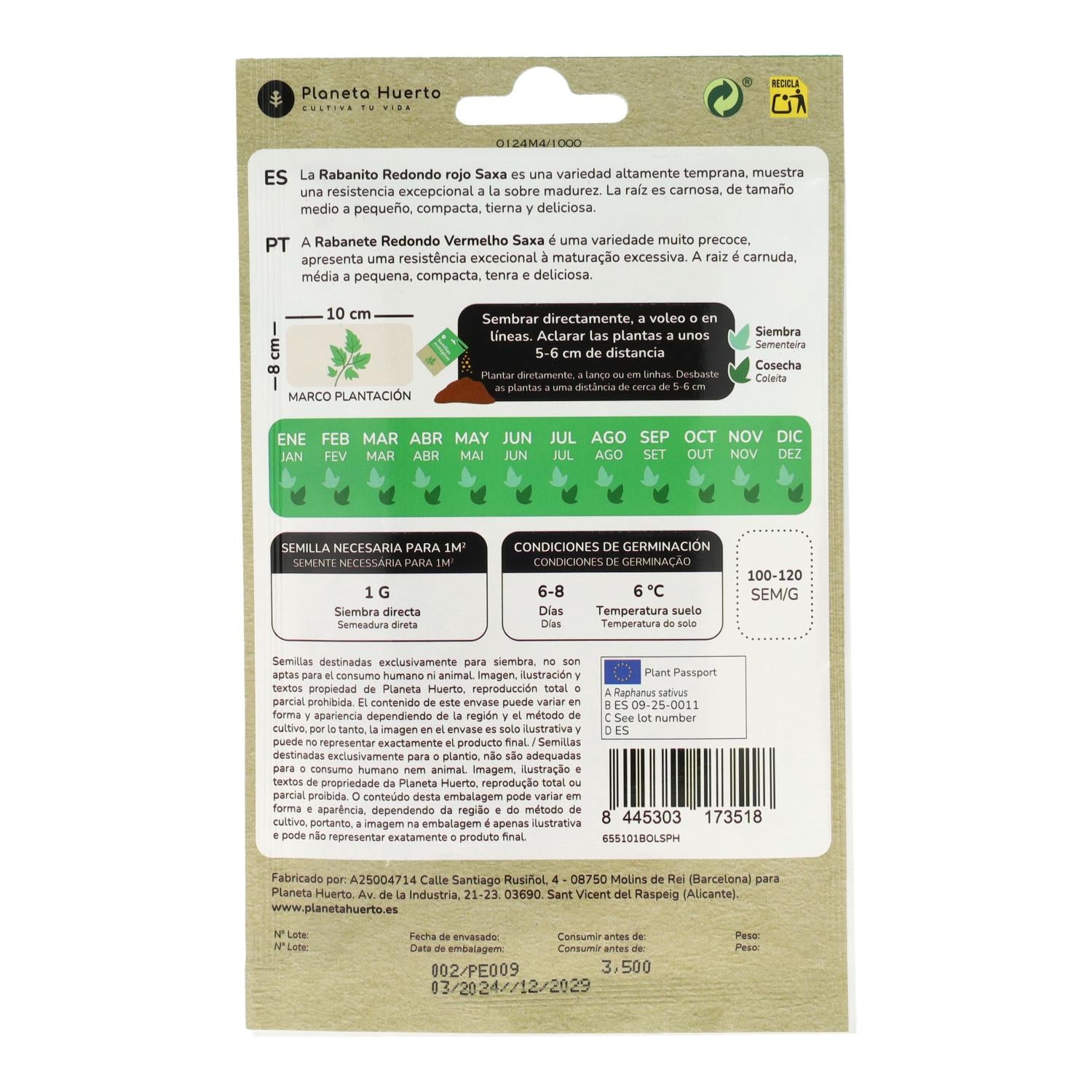 Toda la información sobre "Semillas de Rabanito redondo rojo saxa ecológicas Planeta Huerto"