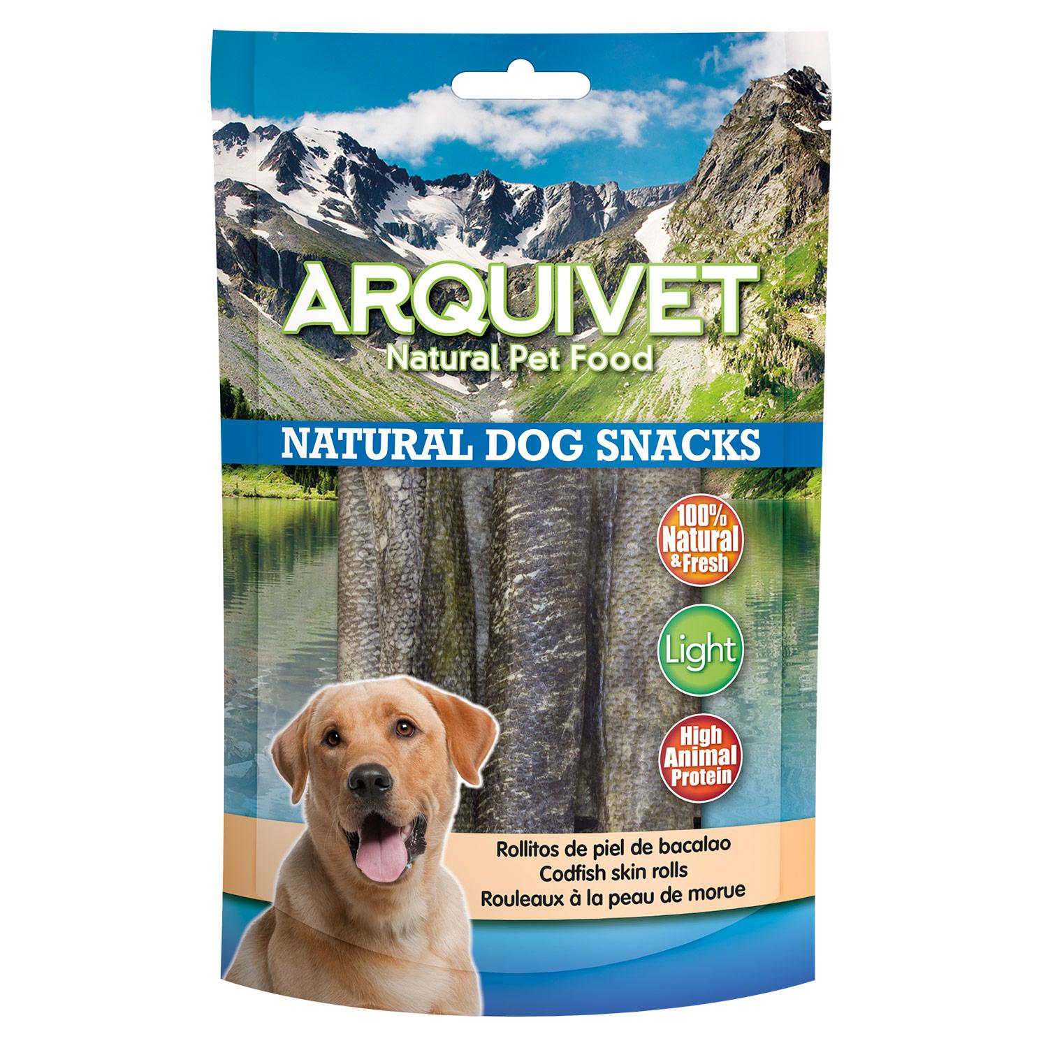 Toda la información sobre "Snack natural para perros Rollitos de piel de bacalao Arquivet 70 g"